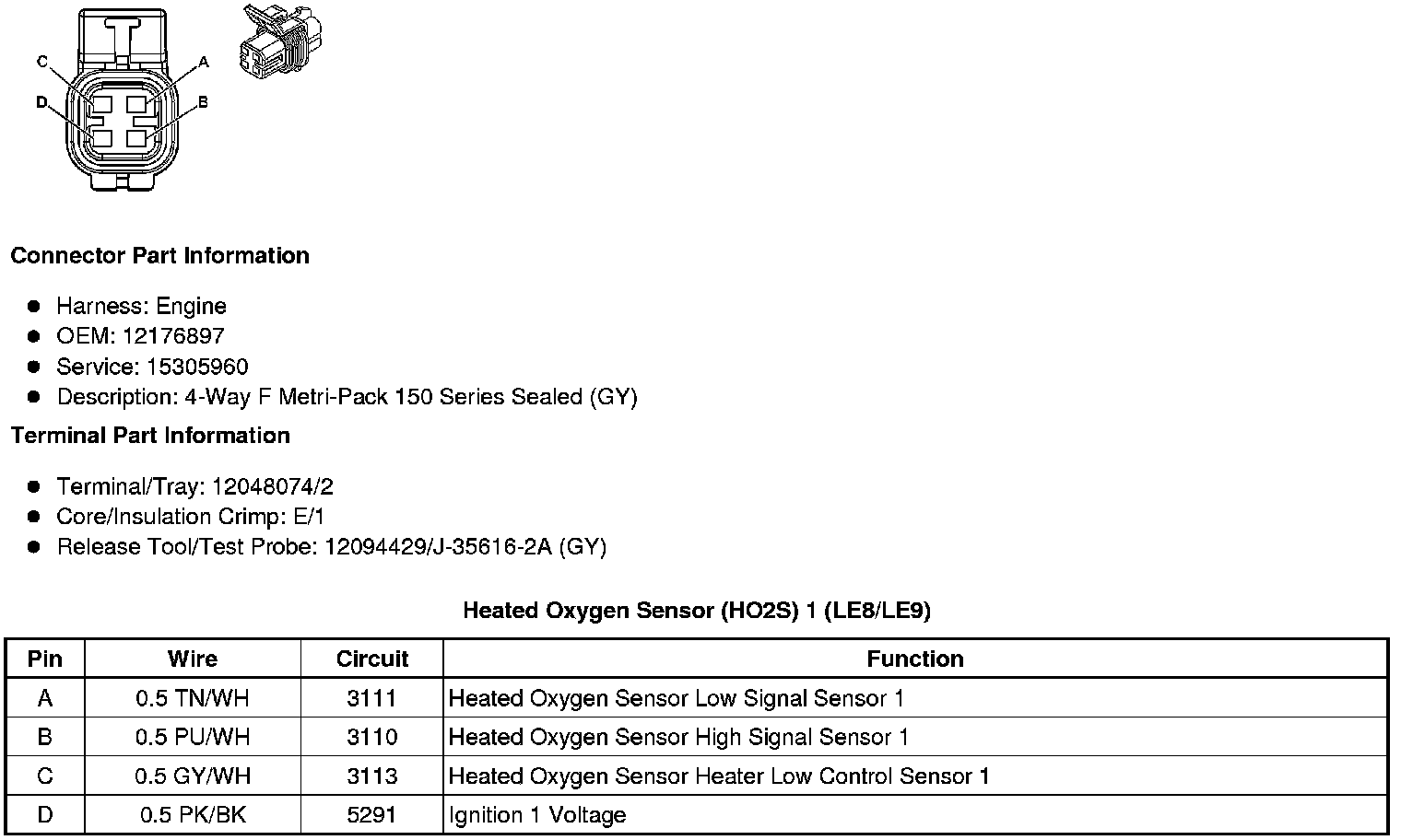 Heated Oxygen Sensor (HO2S) 1 (LE8/LE9)