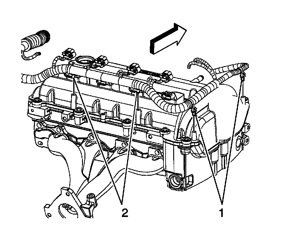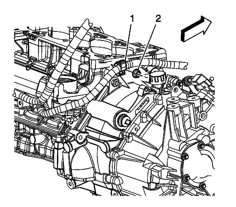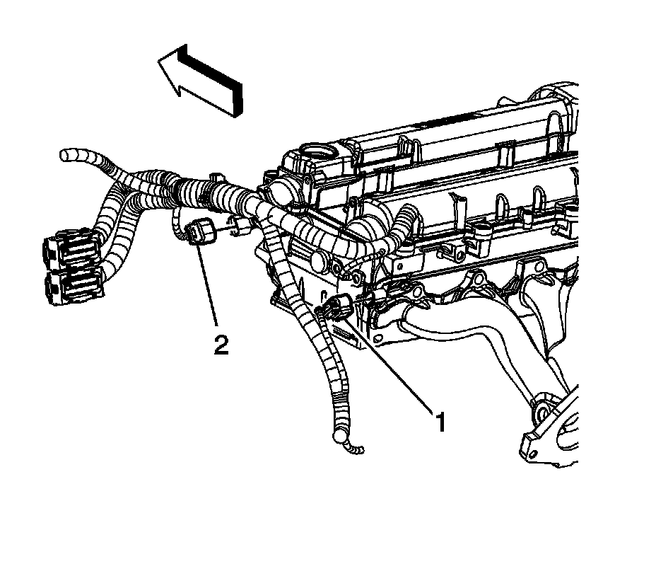 88. Install the engine harness clips (1, 2) to the camshaft cover.