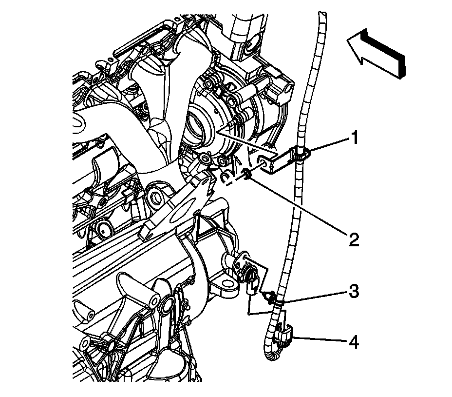 50. Install the engine harness electrical connector clip (4) to the transaxle rear mount bracket.