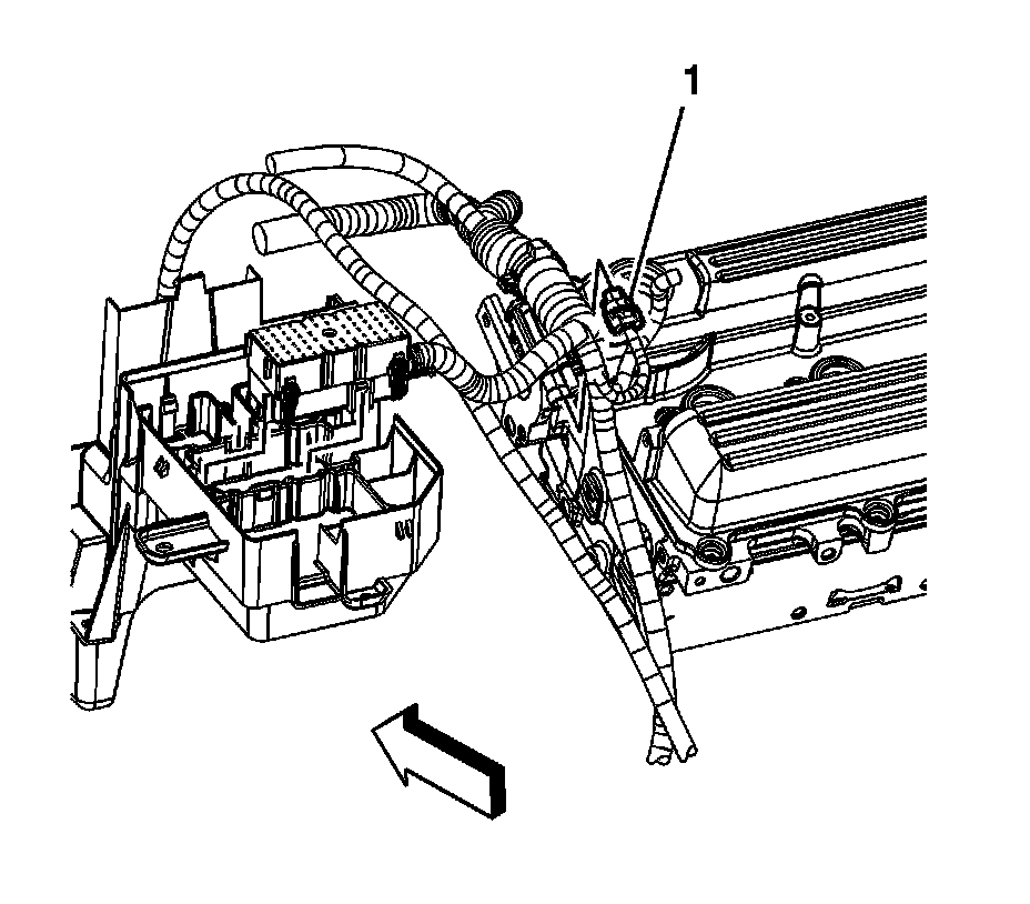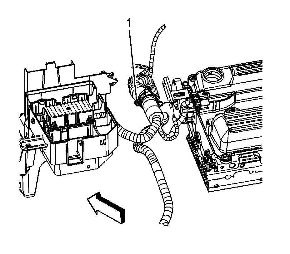 106. Install the engine harness clip (1) to the EVAP purge solenoid bracket.
