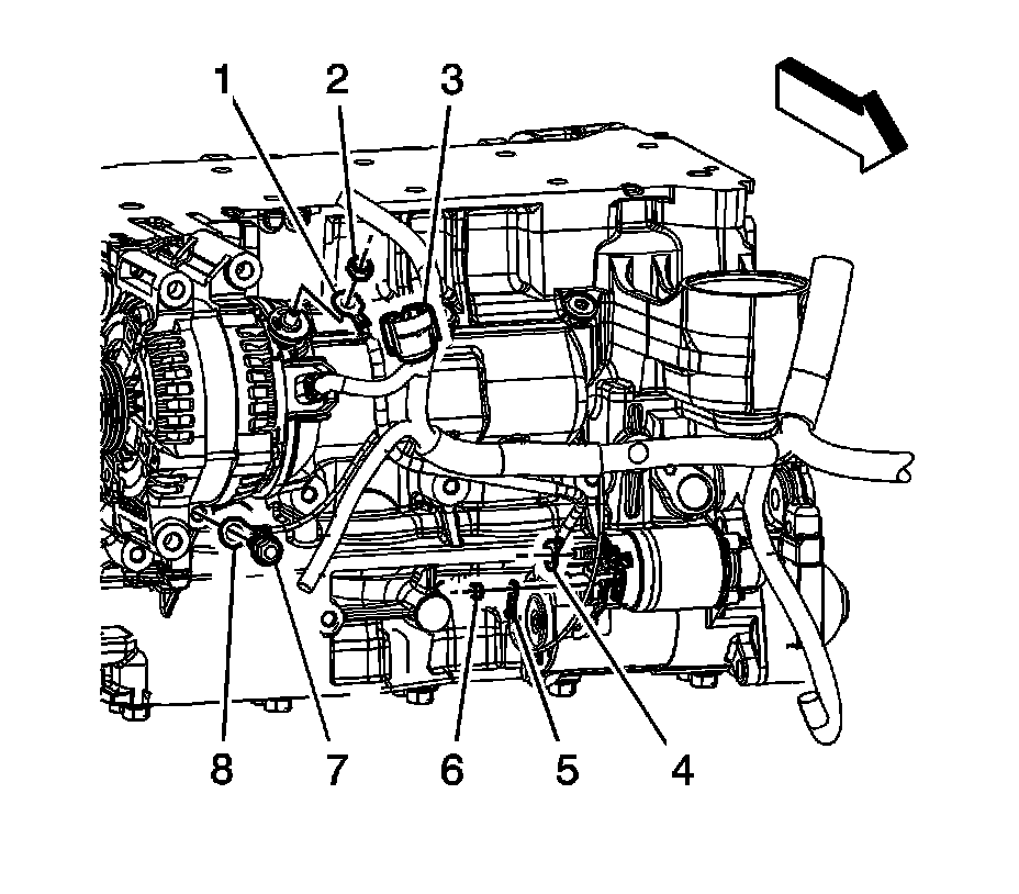 68. Install the engine harness ground (8) to the engine block.