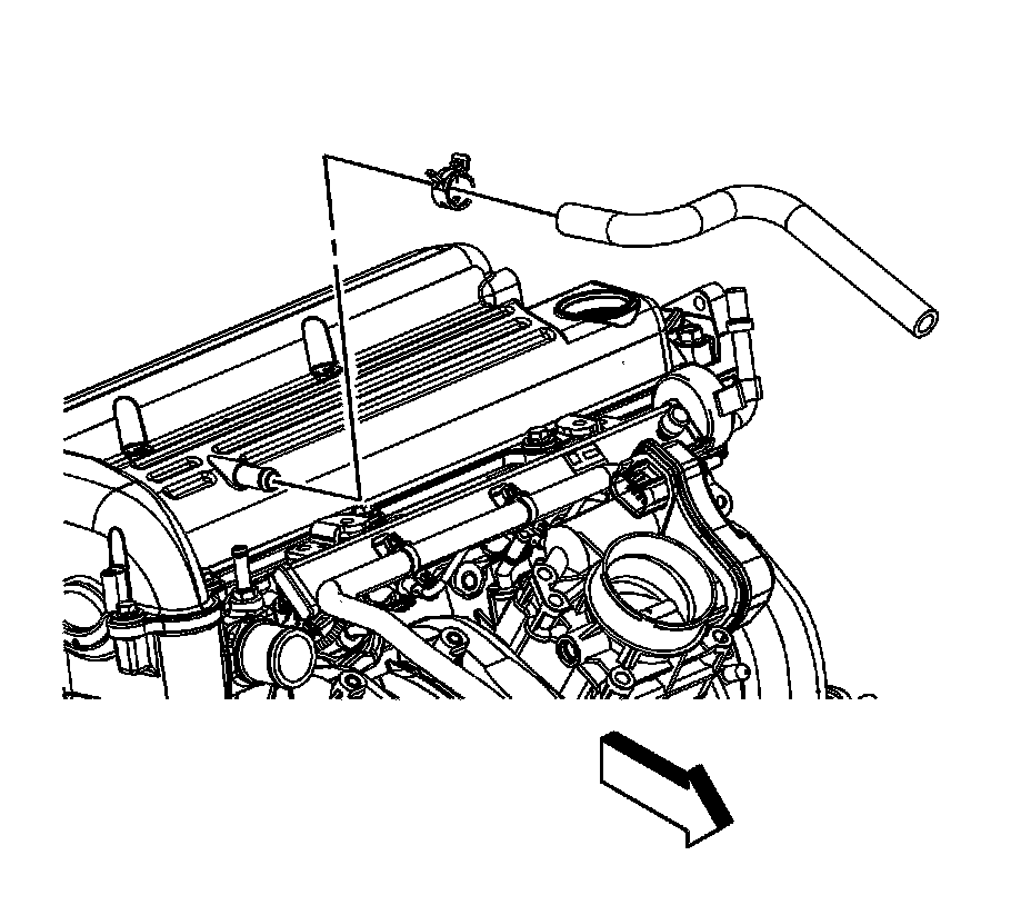 2. Reposition the positive crankcase ventilation (PCV) hose clamp at the camshaft cover.