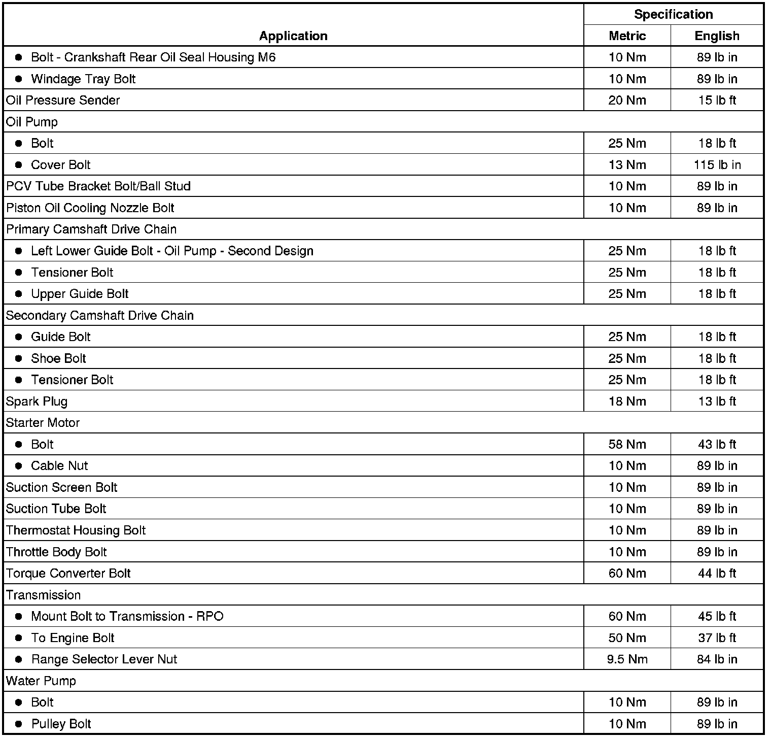 Fastener Tightening Specifications