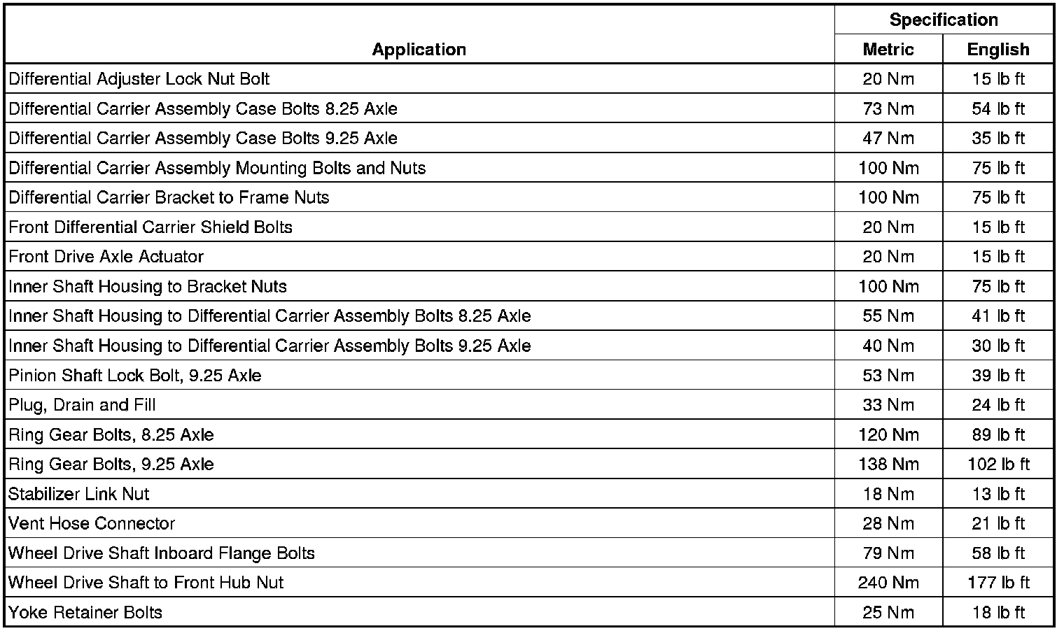 Fastener Tightening Specifications