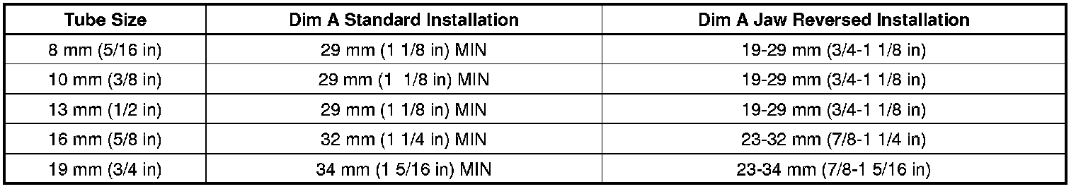 Minimum Tube Length Required Table