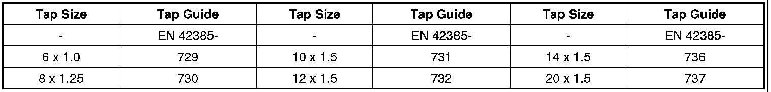 The cylinder head bolt hole thread repair tooling are in the kits EN 42385-2000 - insert kit and EN 42385-700 - kit. The cylinder head bolt hole thread repair components consist of the following: