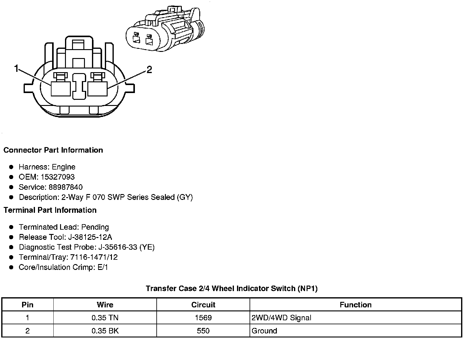 Transfer Case 2/4 Wheel Indicator Switch (NP1)