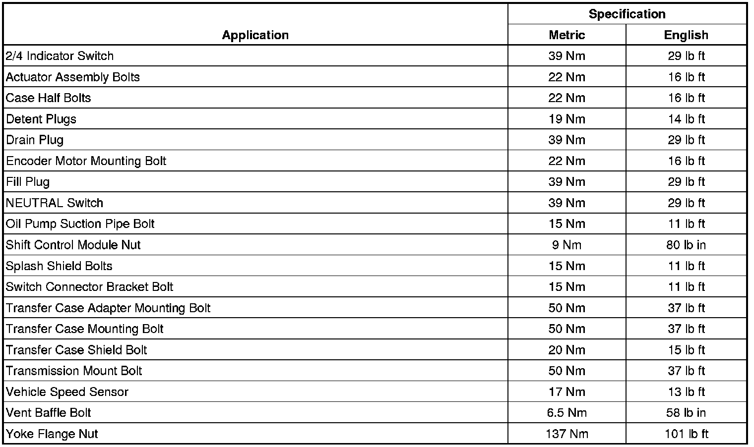 Fastener Tightening Specifications