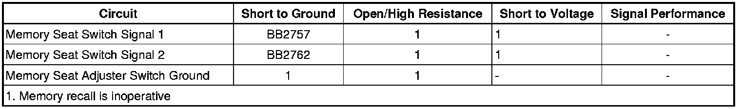 7. If all circuits test normal, test or replace the memory seat adjuster switch.