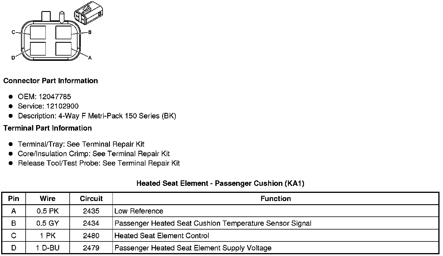 Heated Seat Element - Passenger Cushion (KA1)