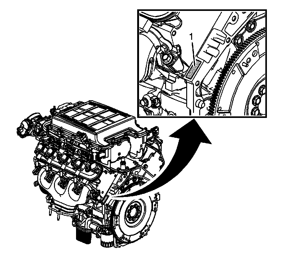 The vehicle identification number (VIN) is located on the left side rear of the engine block (1) and is typically a 9 digit number stamped or laser-etched onto the engine at the vehicle assembly plant.