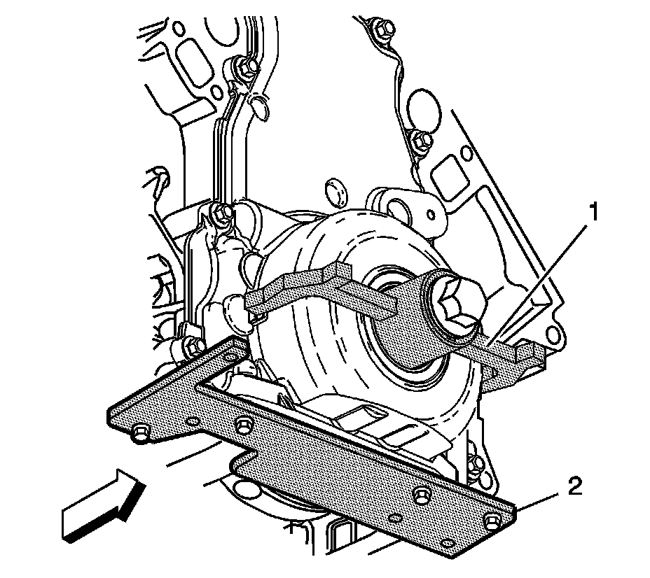 Note: Align the tapered legs of the tool with the machined alignment surfaces on the front cover.