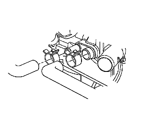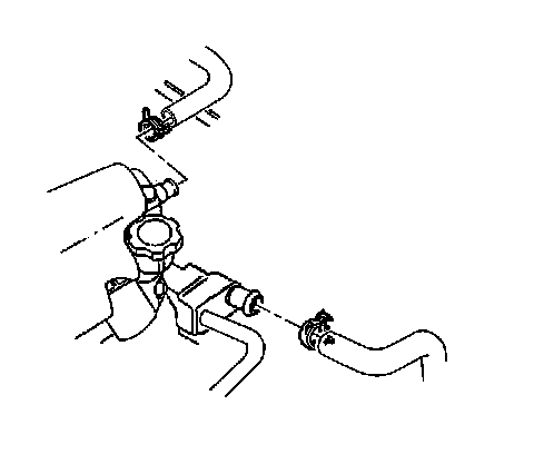 6. Reposition the heater inlet and surge tank outlet hose clamps at the water pump.