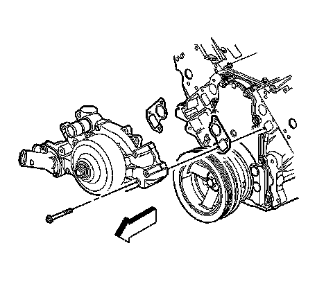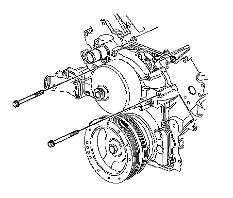 2. Remove the accessory drive belt. Refer to Drive Belt Replacement - Accessory (w/o LS9) (Drive Belt Replacement - Accessory)Drive Belt Replacement - Accessory (LS9) (Drive Belt Replacement - Accessory).