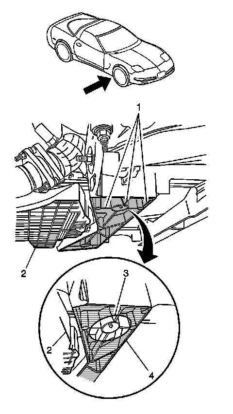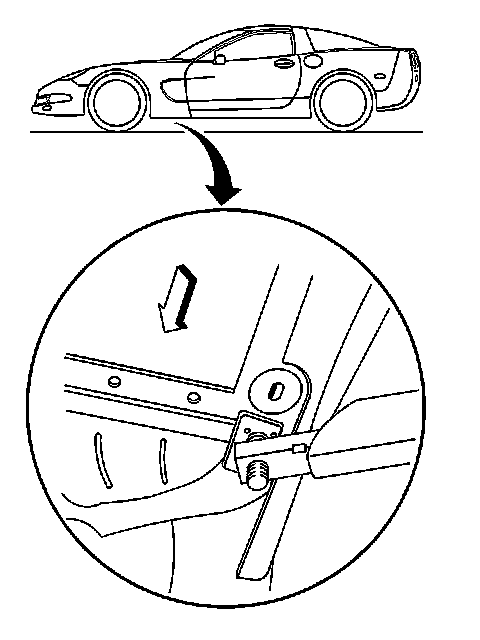 Caution: When you are jacking the vehicle at the front locations, be certain that the jack or the jack lift pad does not contact the front fascia, front fascia air dam, or the front fenders. If such contact occurs, vehicle damage may result. When jacking at selected front locations additional clearance may be required for the jacking points.