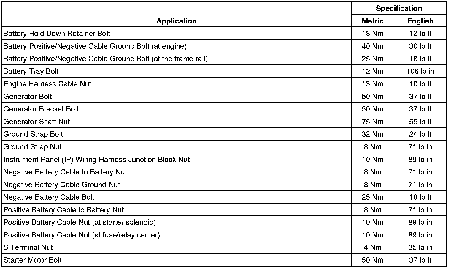Fastener Tightening Specifications