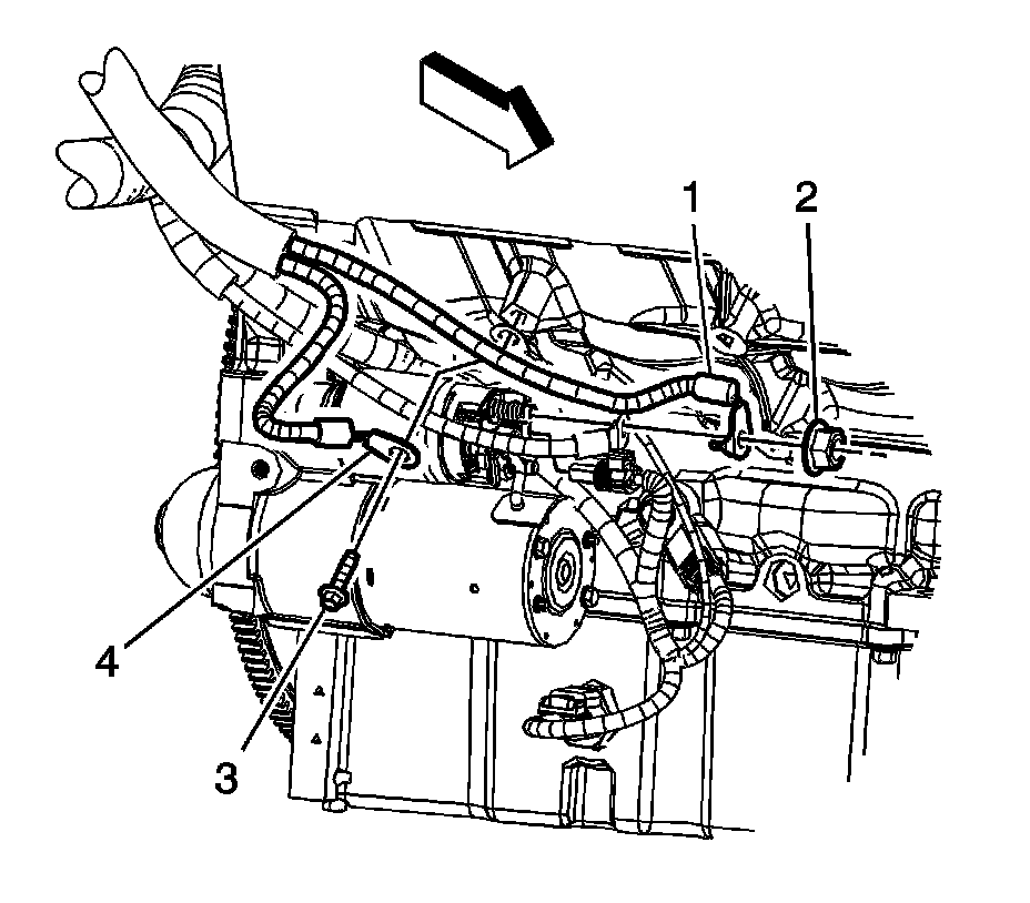 3. Install the battery positive/negative cable bolt (3) to the engine block and tighten to 40 Nm (30 lb ft).