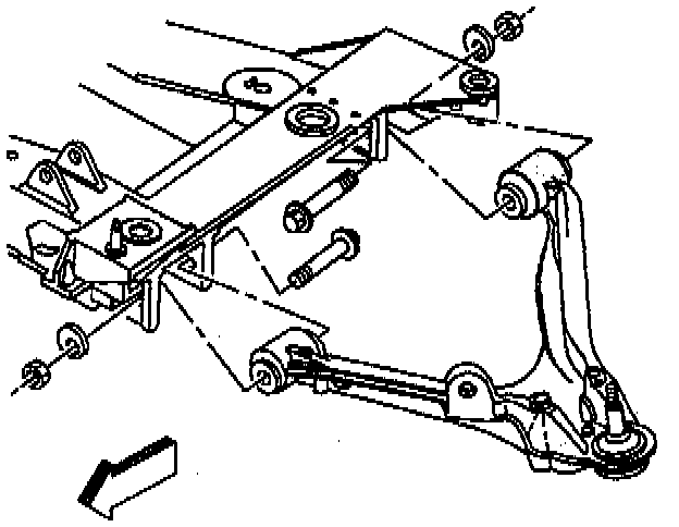 2. Install the cam bolts, washers, and nuts retaining control arm to the crossmember.