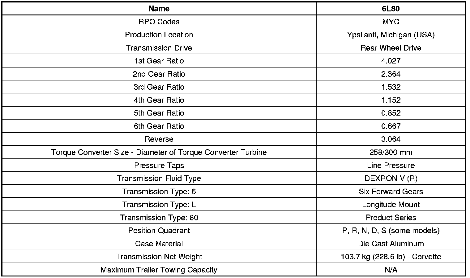 Transmission General Specifications