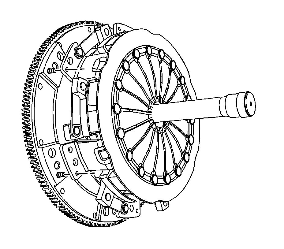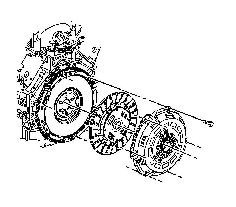 4. Install the clutch driven plate and clutch pressure plate to the engine flywheel with the clutch alignment tool still installed in the clutch assembly.