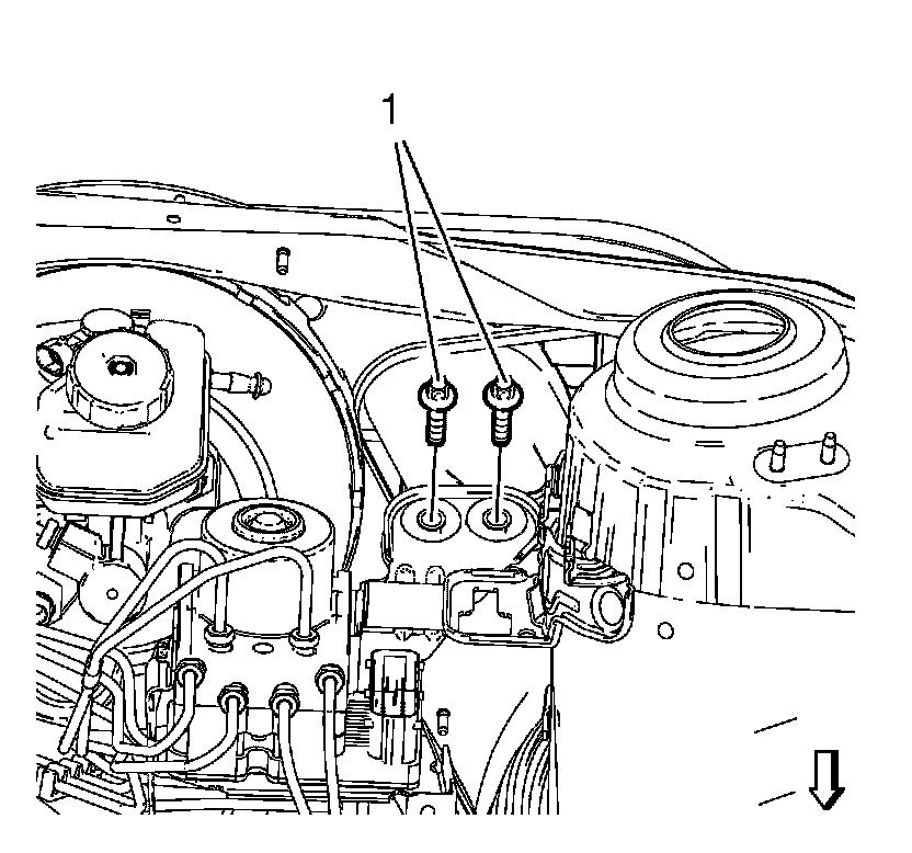 7. Pull the brake booster and the BPMV assembly forward in order to get access to the brake pedal bracket nuts (1).