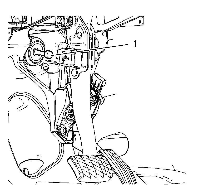 15. Replace click fit connector (1) between booster pushrod and brake pedal with new part.