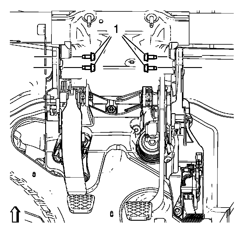 8. Remove the brake pedal bracket nuts (1).