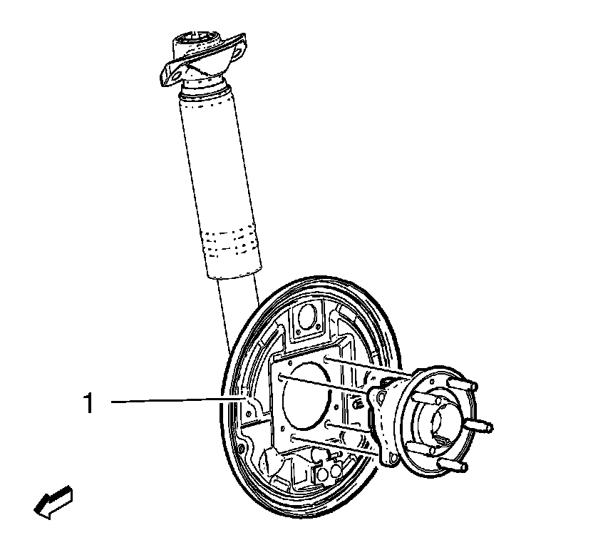 7. Remove the wheel bearing/hub assembly. Refer to Rear Wheel Bearing and Hub Replacement (Disc Brakes) (Rear Suspension)