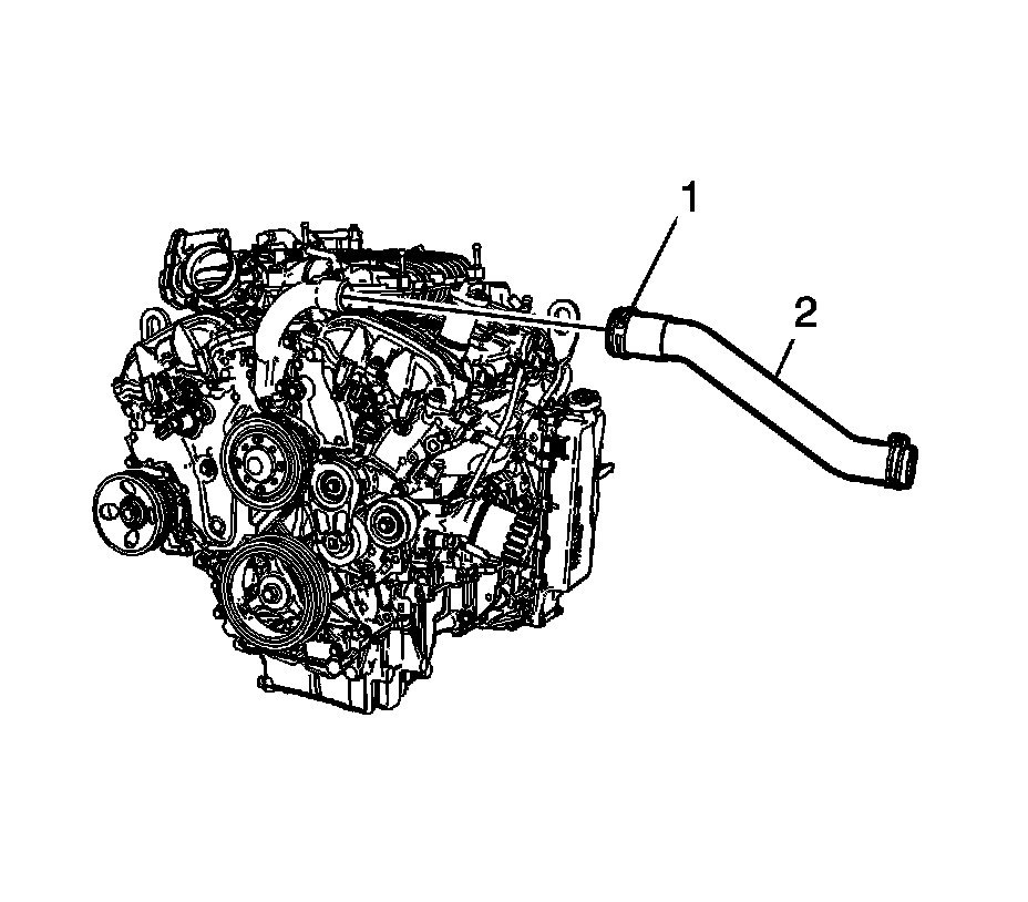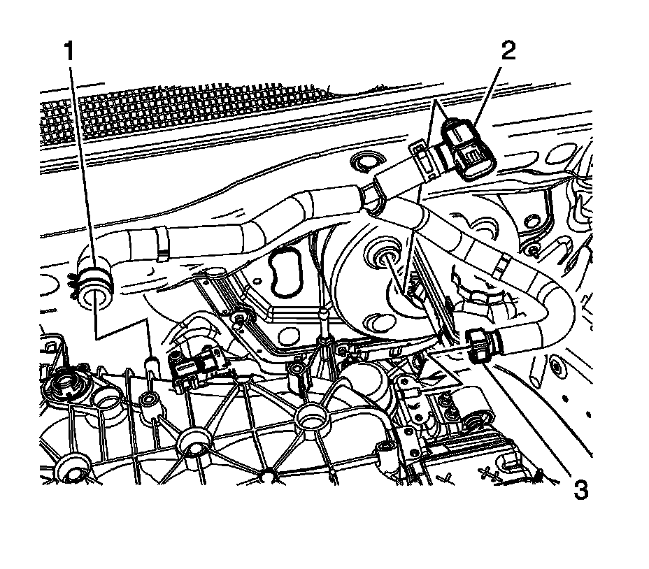 50. Connect the radiator outlet hose to the engine. Refer to Radiator Outlet Hose Replacement (LAF) (Radiator Outlet Hose Replacement)Radiator Outlet Hose Replacement (LF1 or LFW) (Radiator Outlet Hose Replacement).