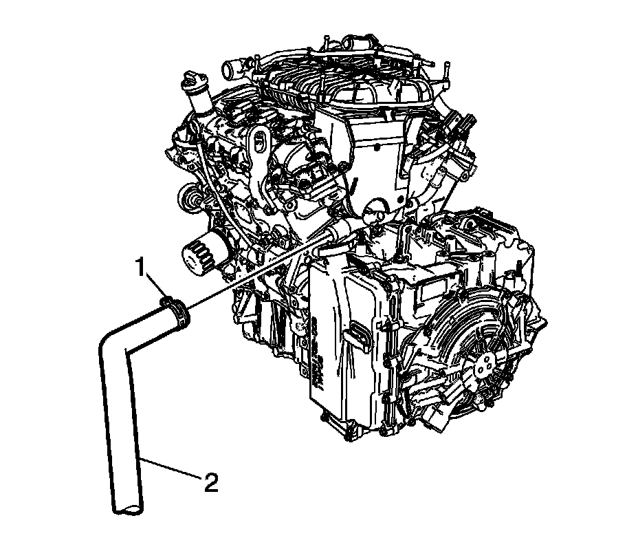30. Disconnect the Coolant Recovery Reservoir Outlet Hose. Refer to Coolant Recovery Reservoir Outlet Hose Replacement (LAF) (Coolant Recovery Reservoir Outlet Hose Replacement)Coolant Recovery Reservoir Outlet Hose Replacement (LF1 or LFW) (Coolant Recovery Reservoir Outlet Hose Replacement).