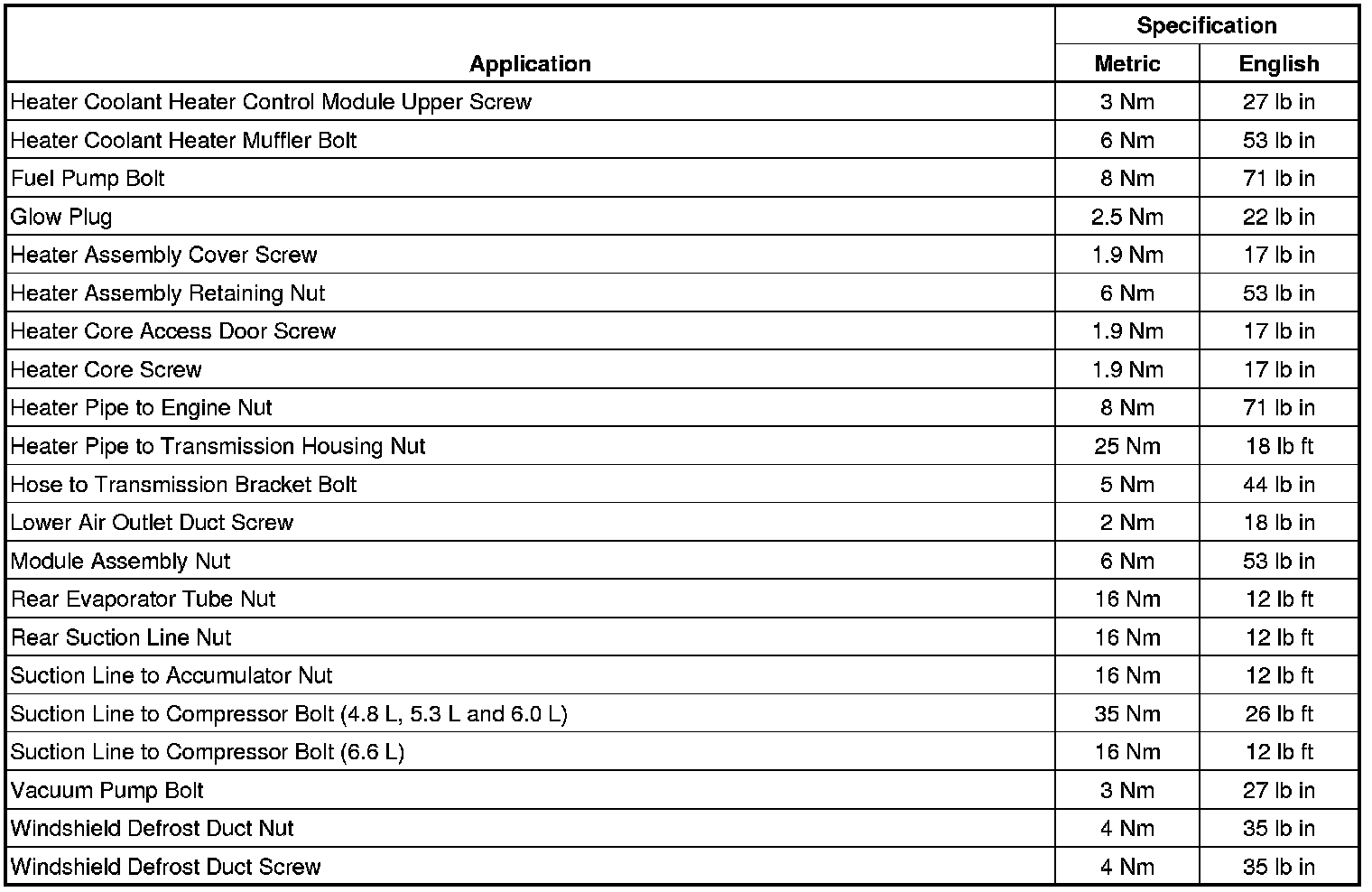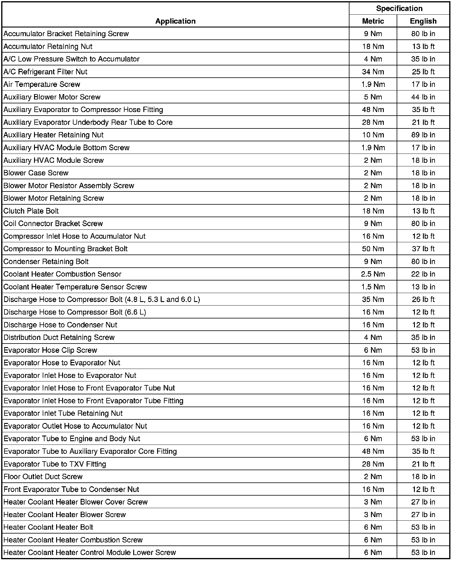 Fastener Tightening Specifications