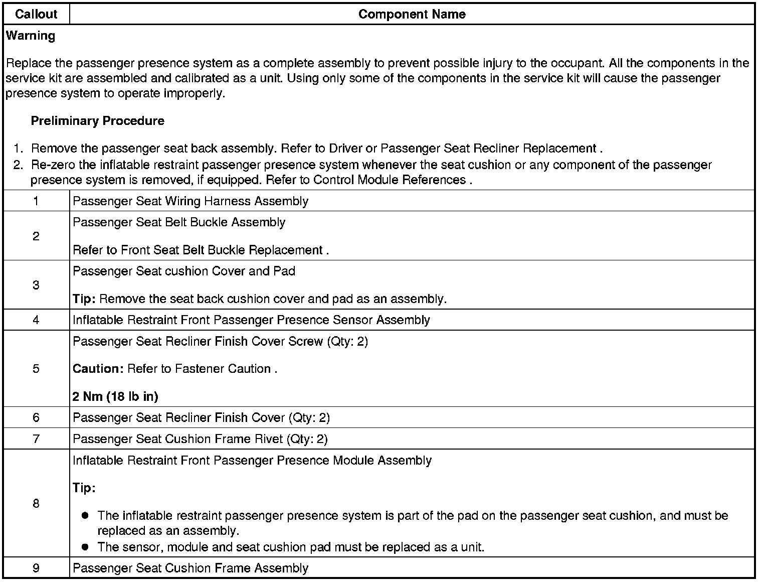 Driver or Passenger Seat Cushion Frame Replacement