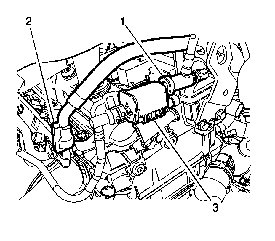 8. Connect the EVAP line (1) to the purge solenoid (3). Refer to Plastic Collar Quick Connect Fitting Service (Plastic Collar Quick Connect Fitting Service).