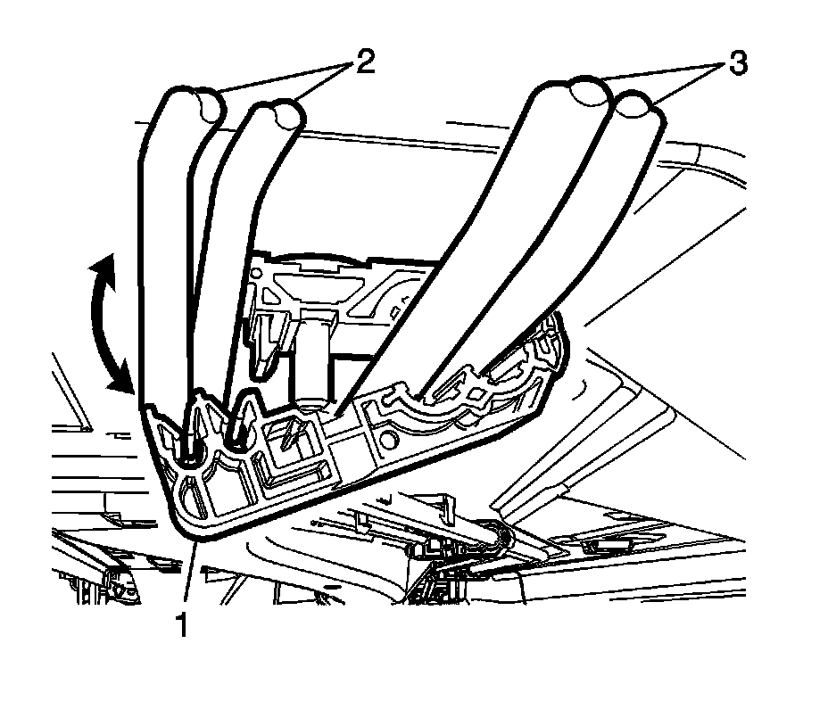 2. Install the fuel and EVAP lines (3) to the brackets (1) and close the brackets to lock the lines in place.
