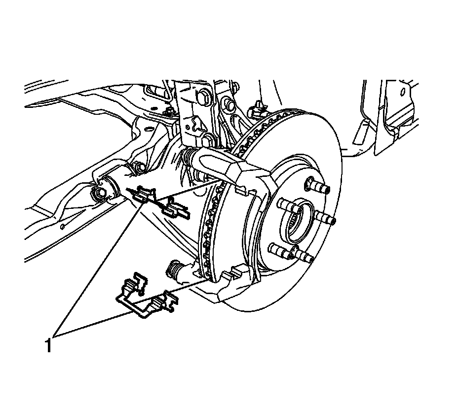 Caution: Support the brake caliper with heavy mechanic wire, or equivalent, whenever it is separated from its mount and the hydraulic flexible brake hose is still connected. Failure to support the caliper in this manner will cause the flexible brake hose to bear the weight of the caliper, which may cause damage to the brake hose and in turn may cause a brake fluid leak.