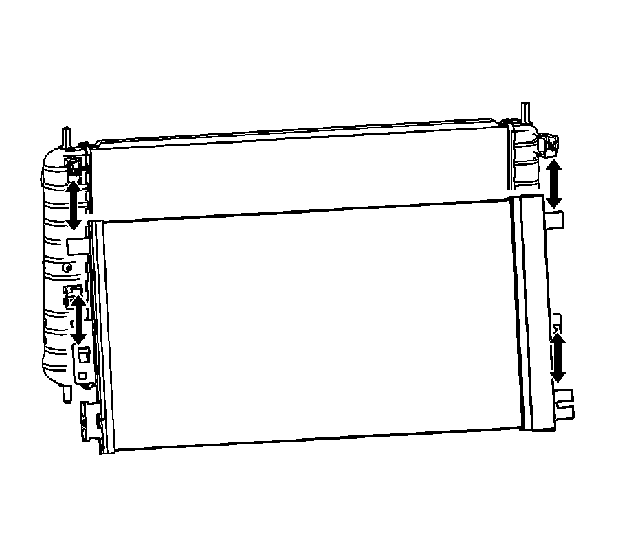 21. Push upward on the radiator and downward on the condenser to unsnap the condenser mounting tabs from the radiator clip.