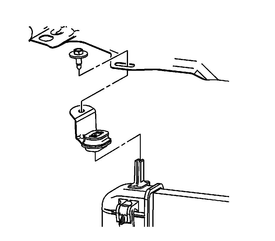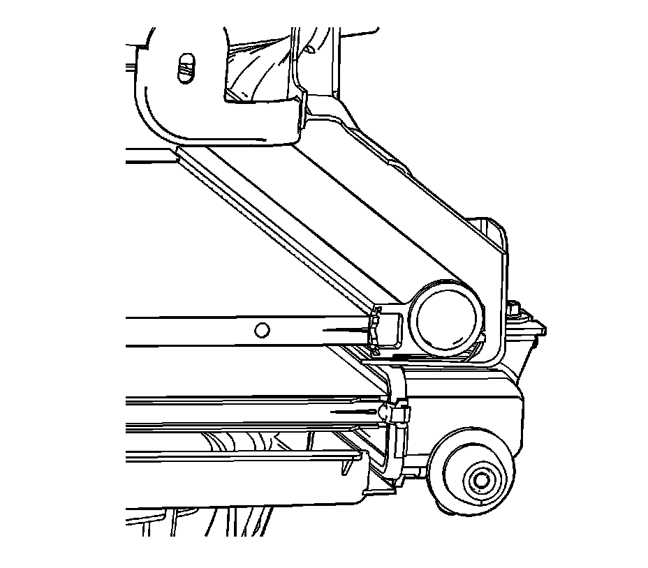 Caution: The bolt retaining the condenser to the radiator end tank is a special length and should be the ONLY bolt used upon reinstallation. The use of a longer bolt will damage the radiator end tank.