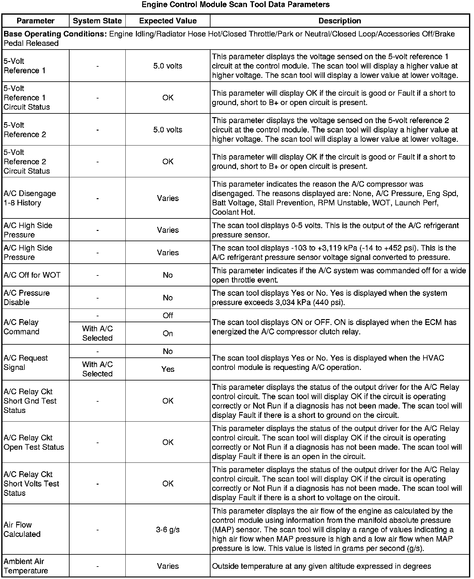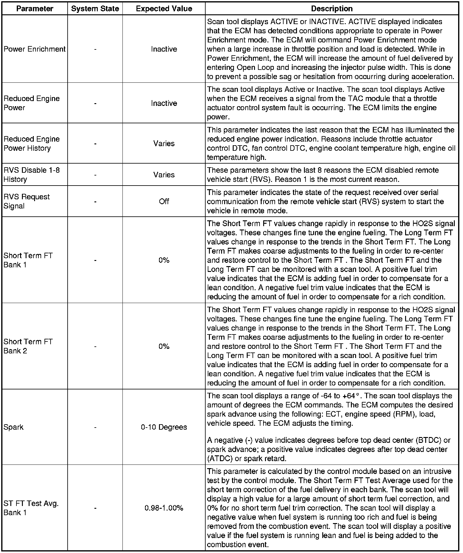 The Engine Control Module Scan Tool Data List contains all engine-related parameters that are available on the scan tool. The list is arranged in alphabetical order. A given parameter may appear in any one of the data lists, and in some cases may appear more than once, or in more than one data list in order to group certain related parameters together.