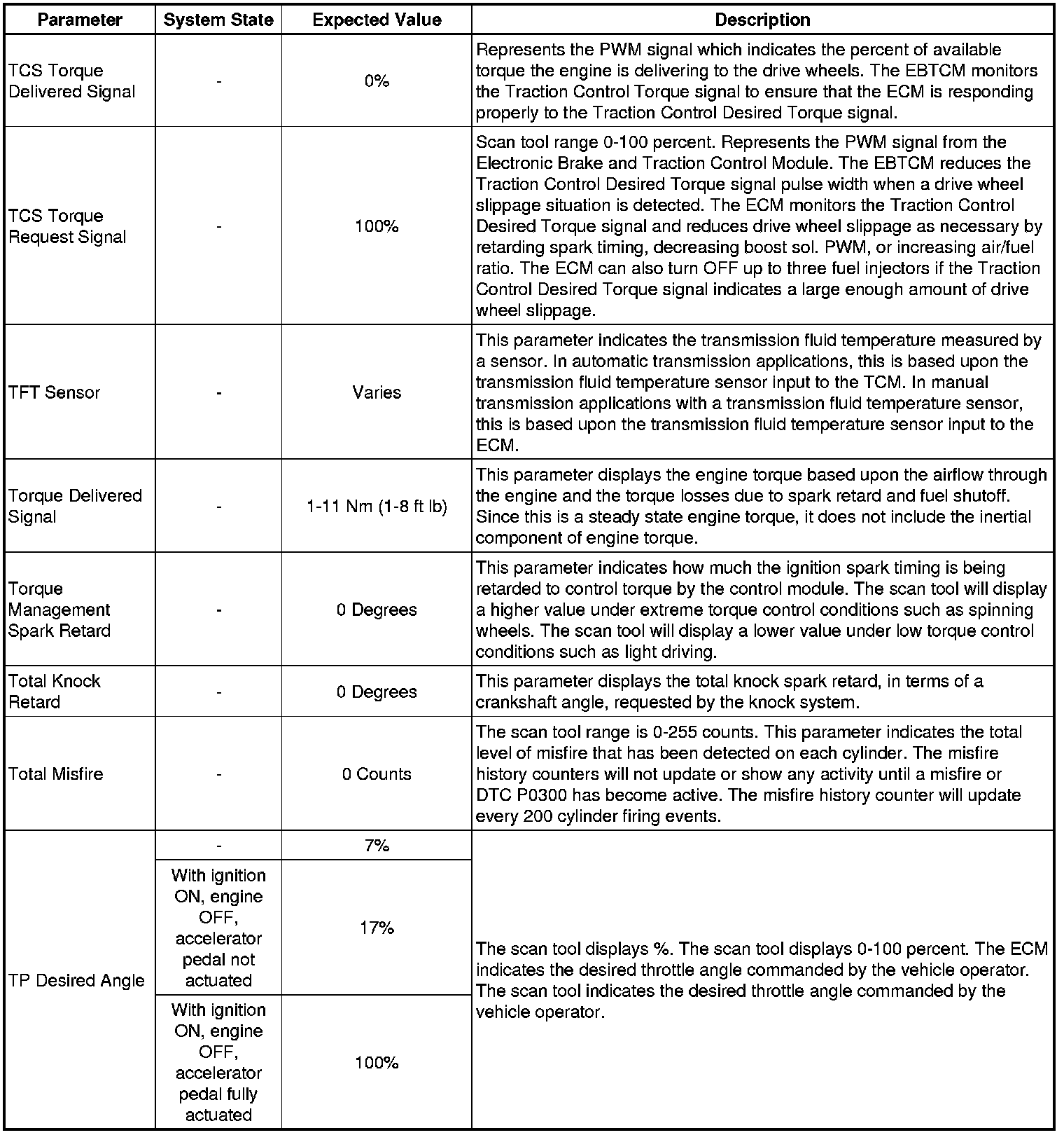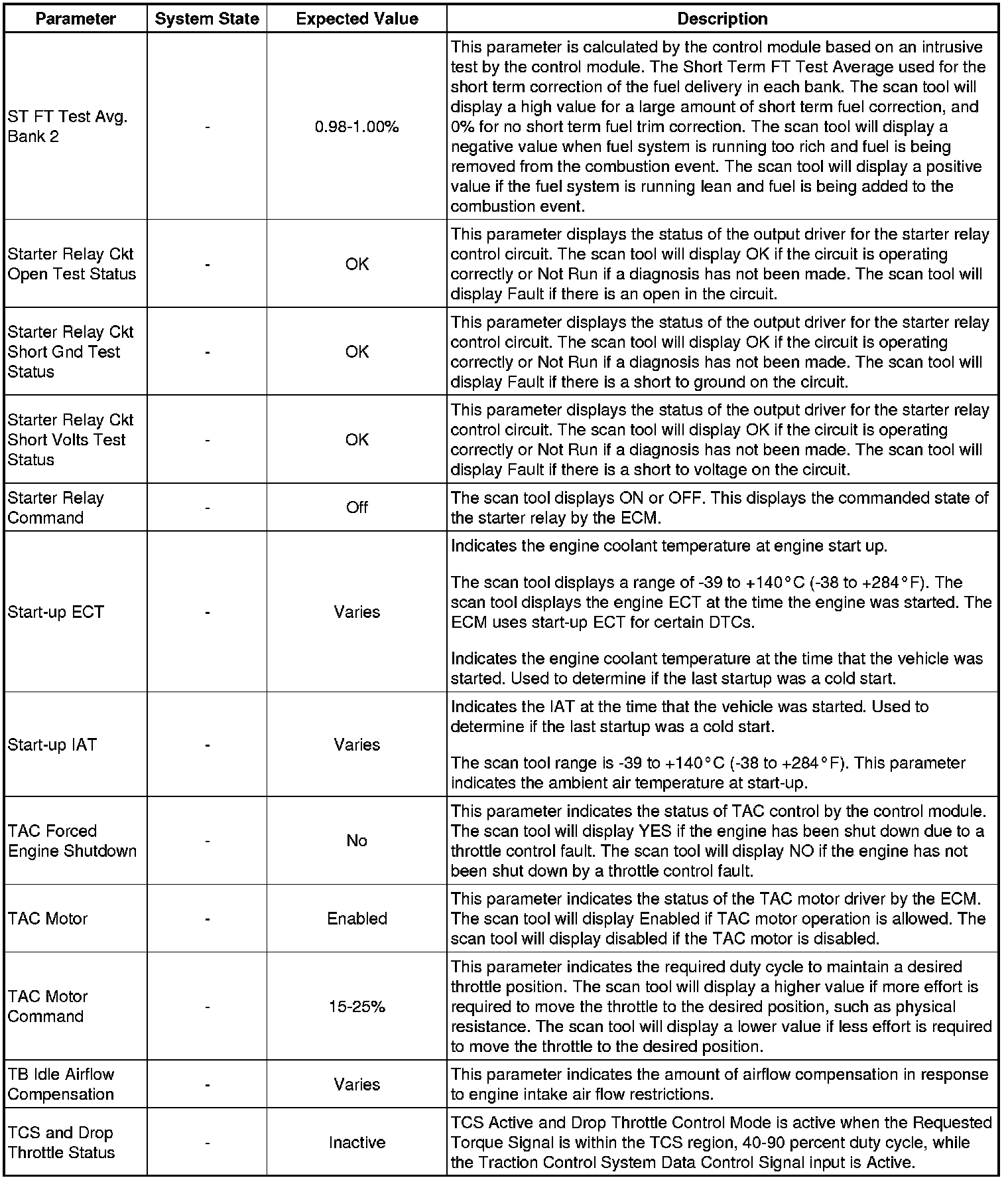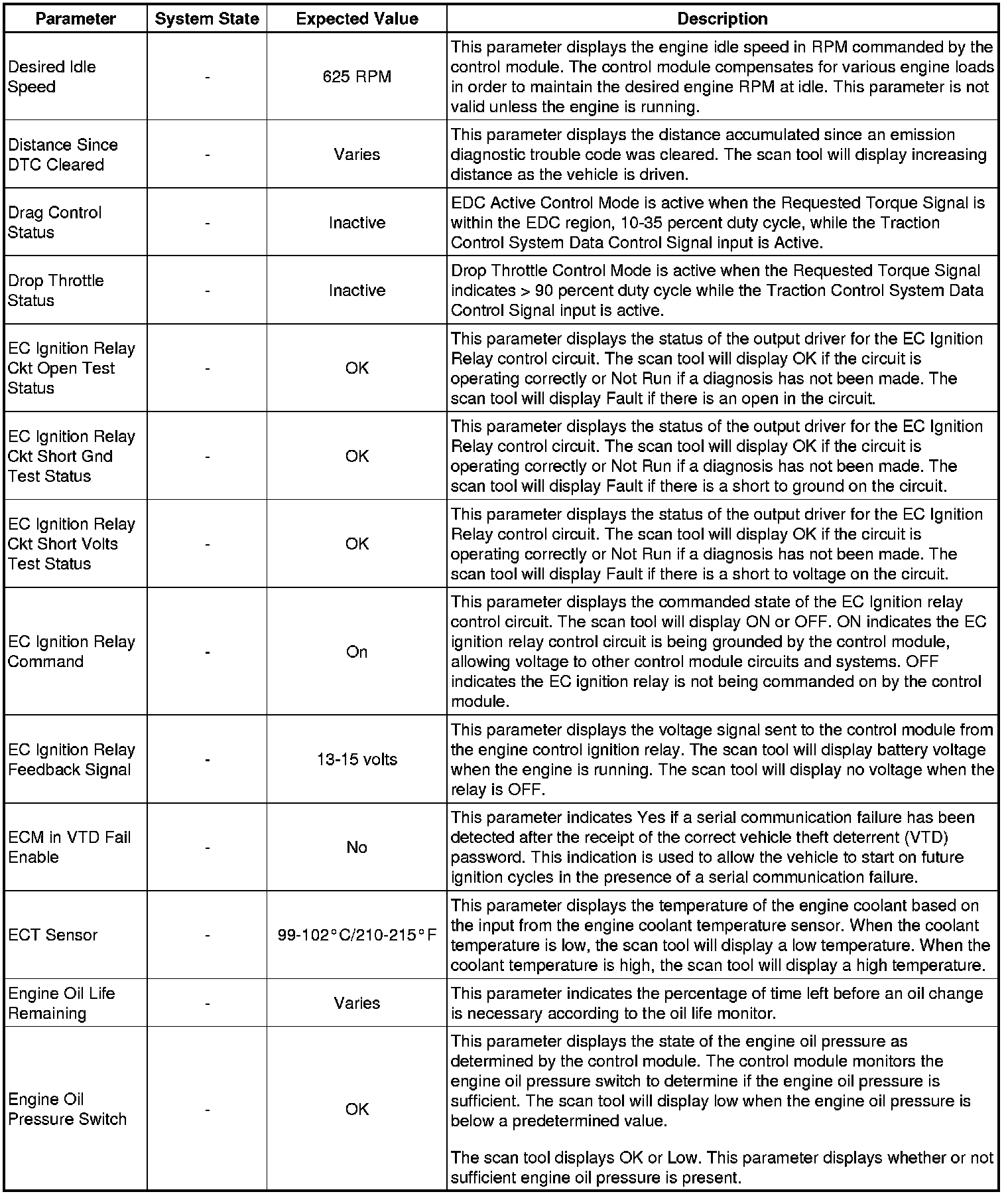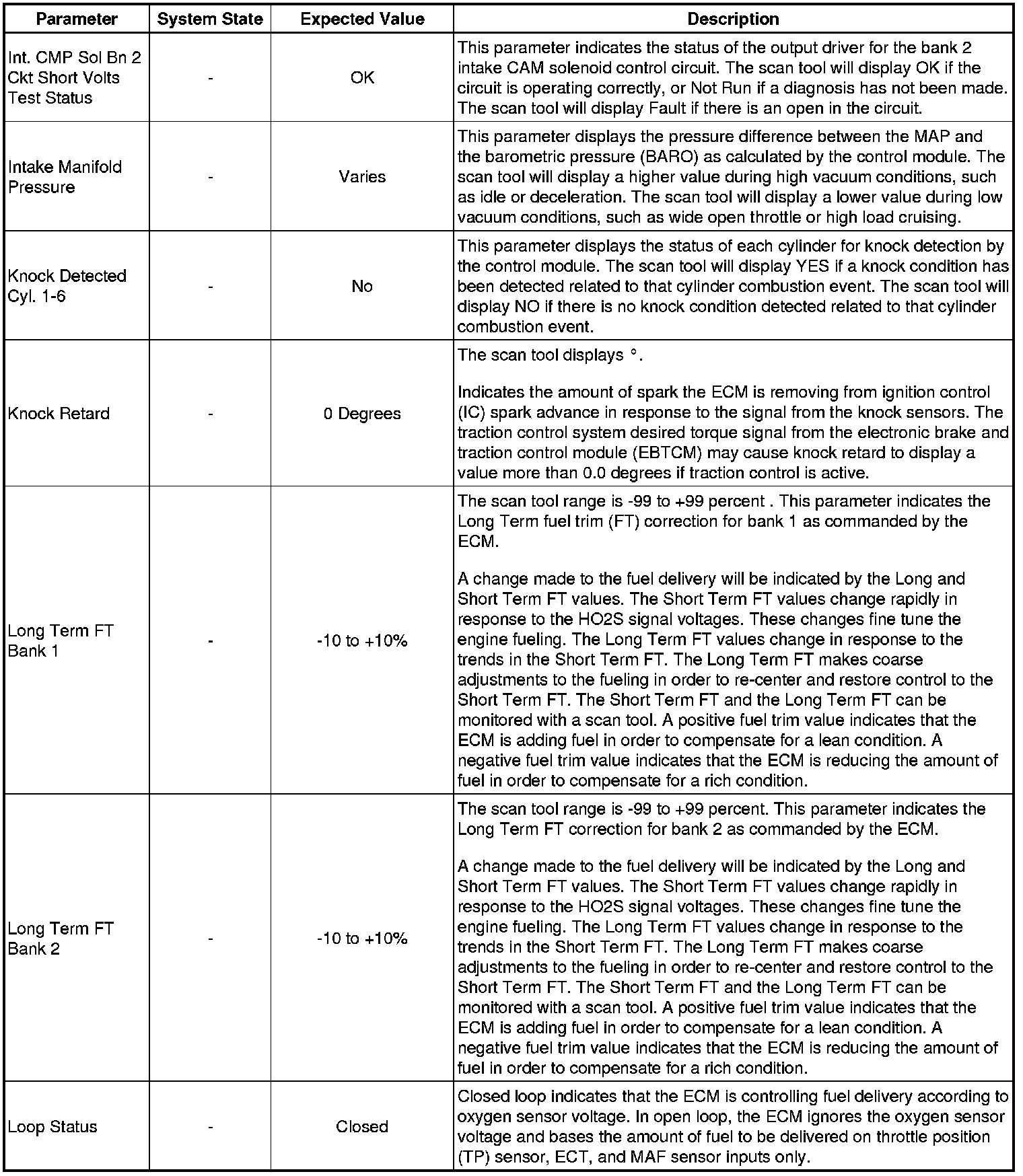 Only the parameters listed below are referenced in this service manual for use in diagnosis. If all values are within the typical range described below, refer to Symptoms - Engine Controls (Symptoms - Engine Controls) for diagnosis.