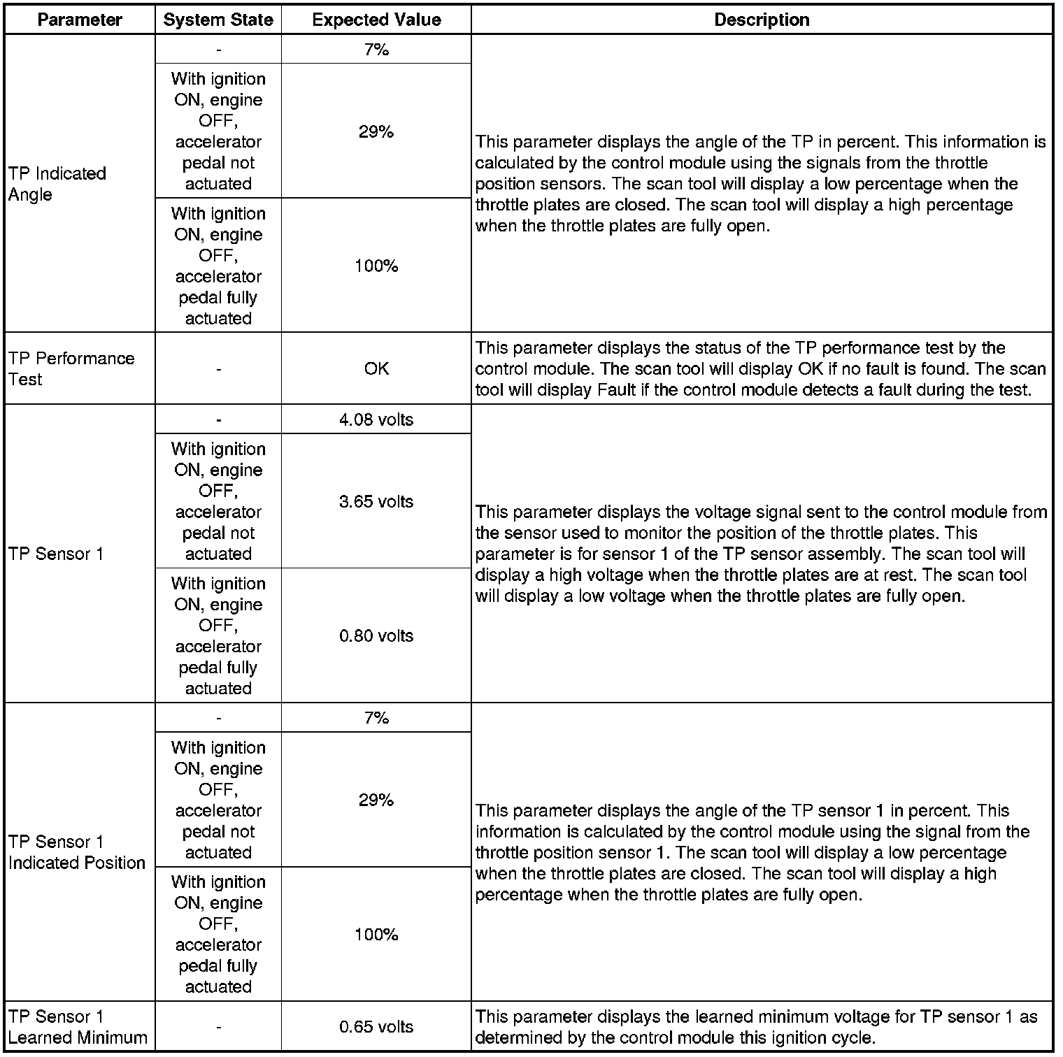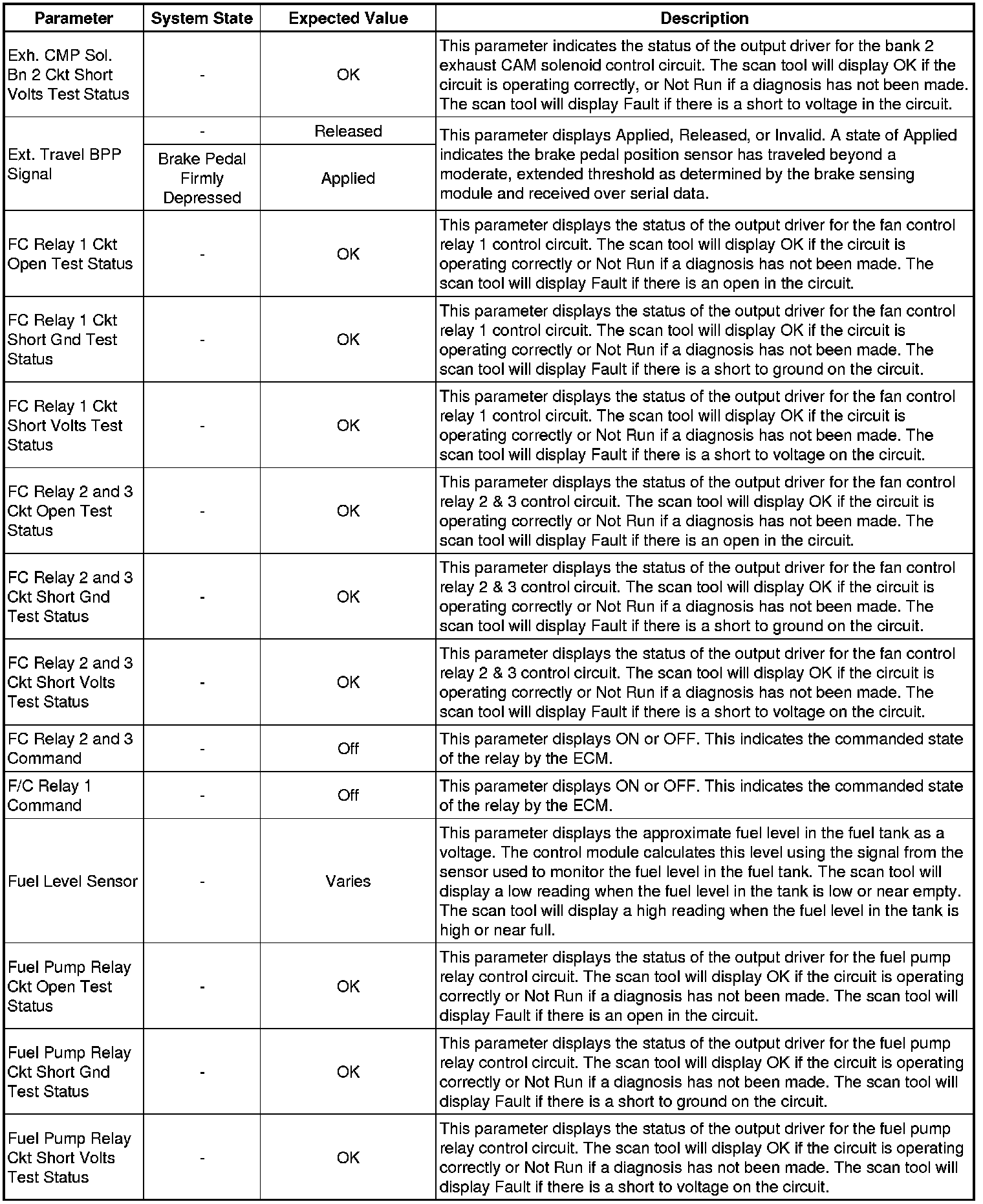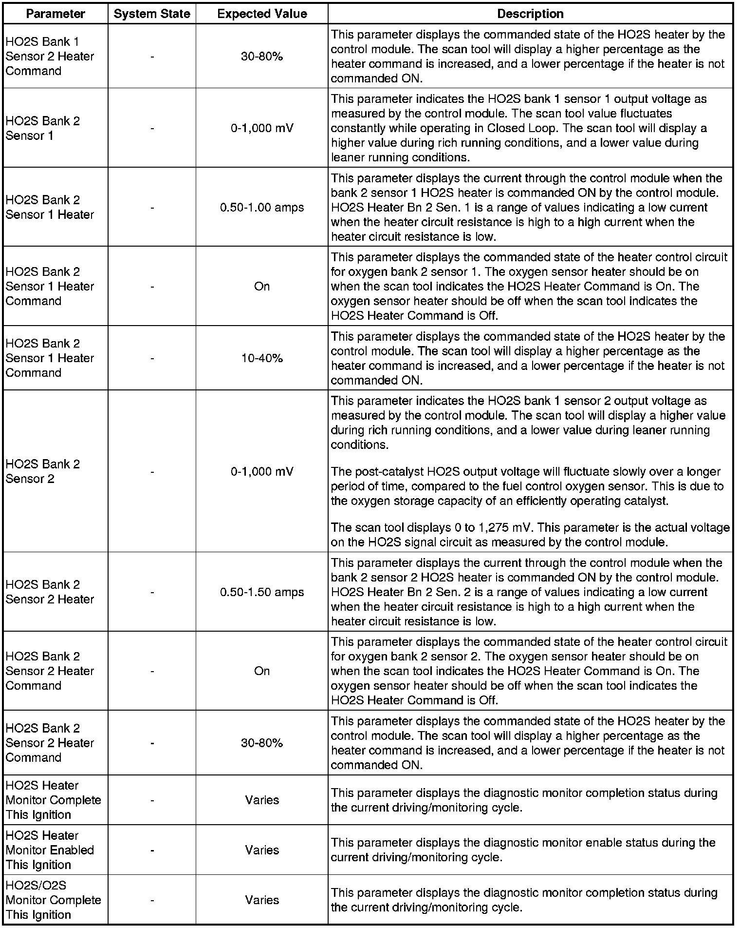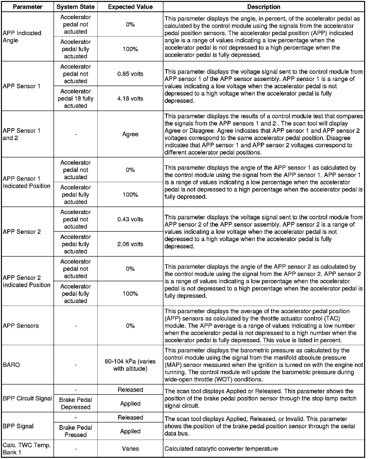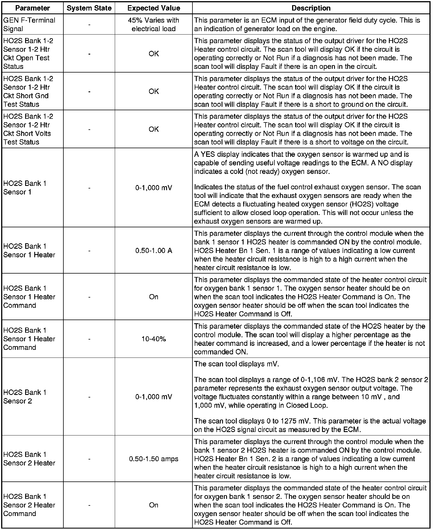 Only the parameters listed below are referenced in this service manual for use in diagnosis. If all values are within the typical range described below, refer to Symptoms - Engine Controls (Symptoms - Engine Controls) for diagnosis.