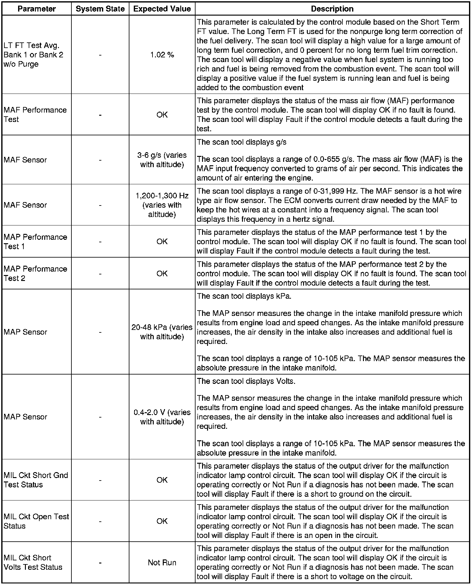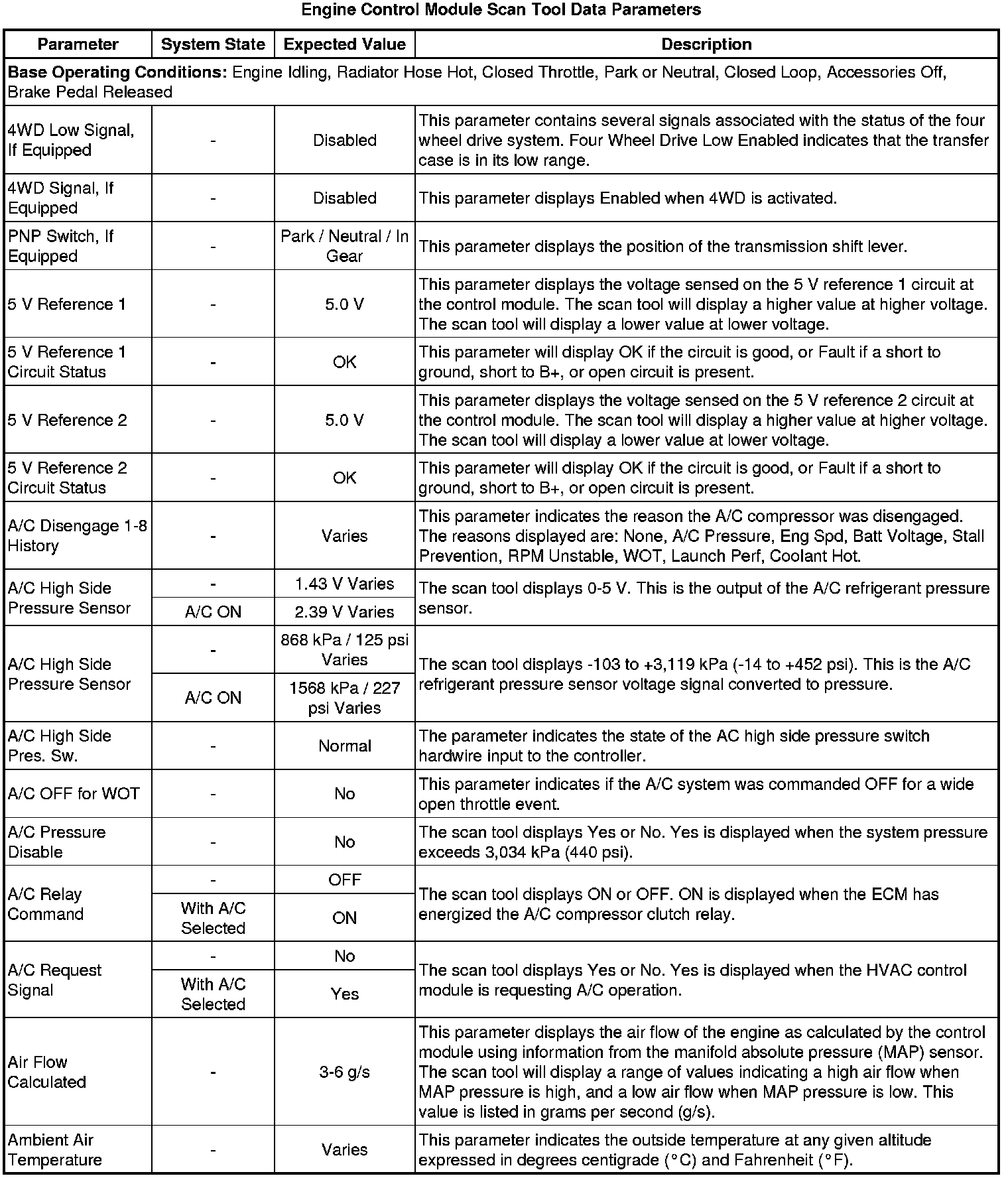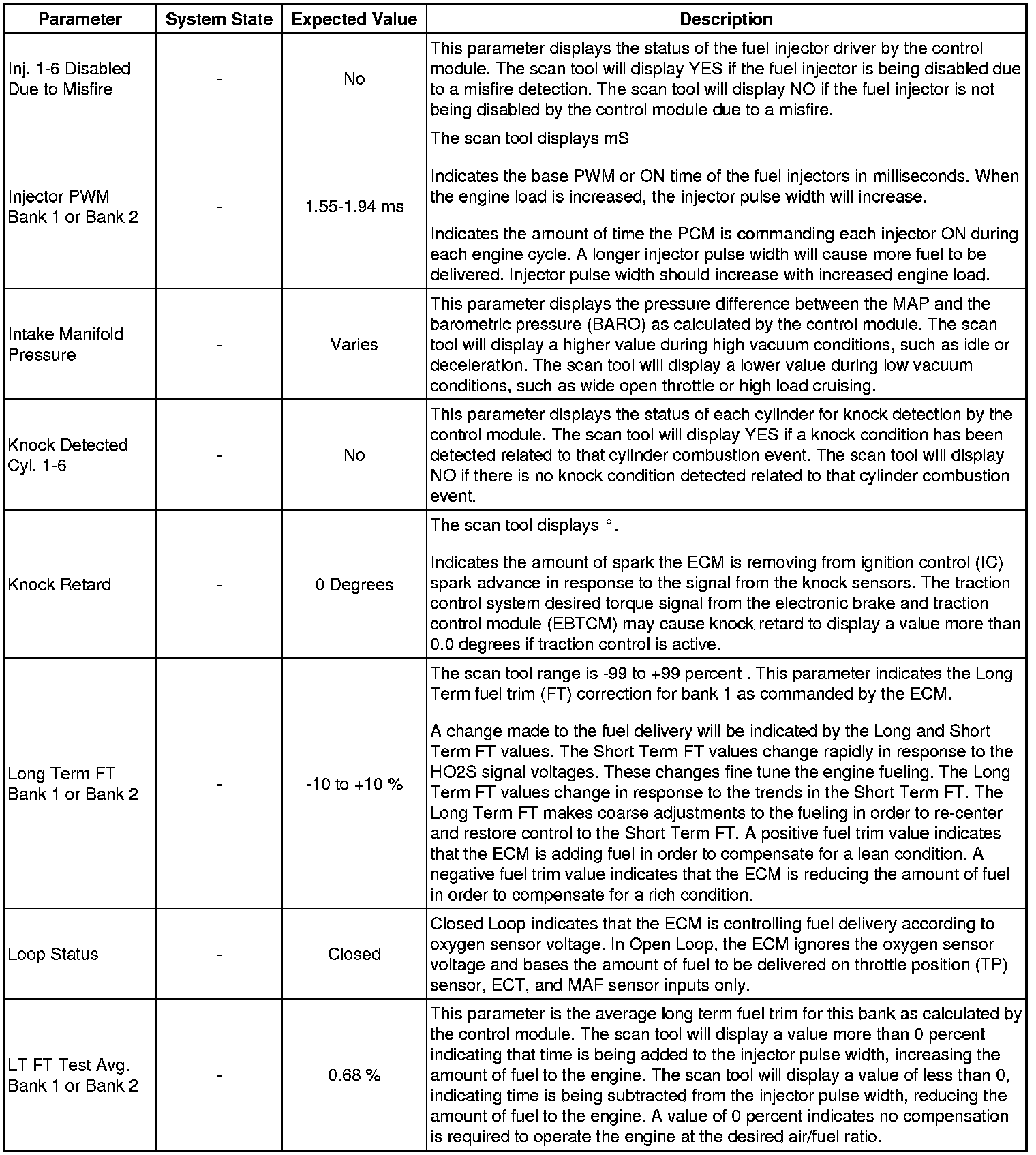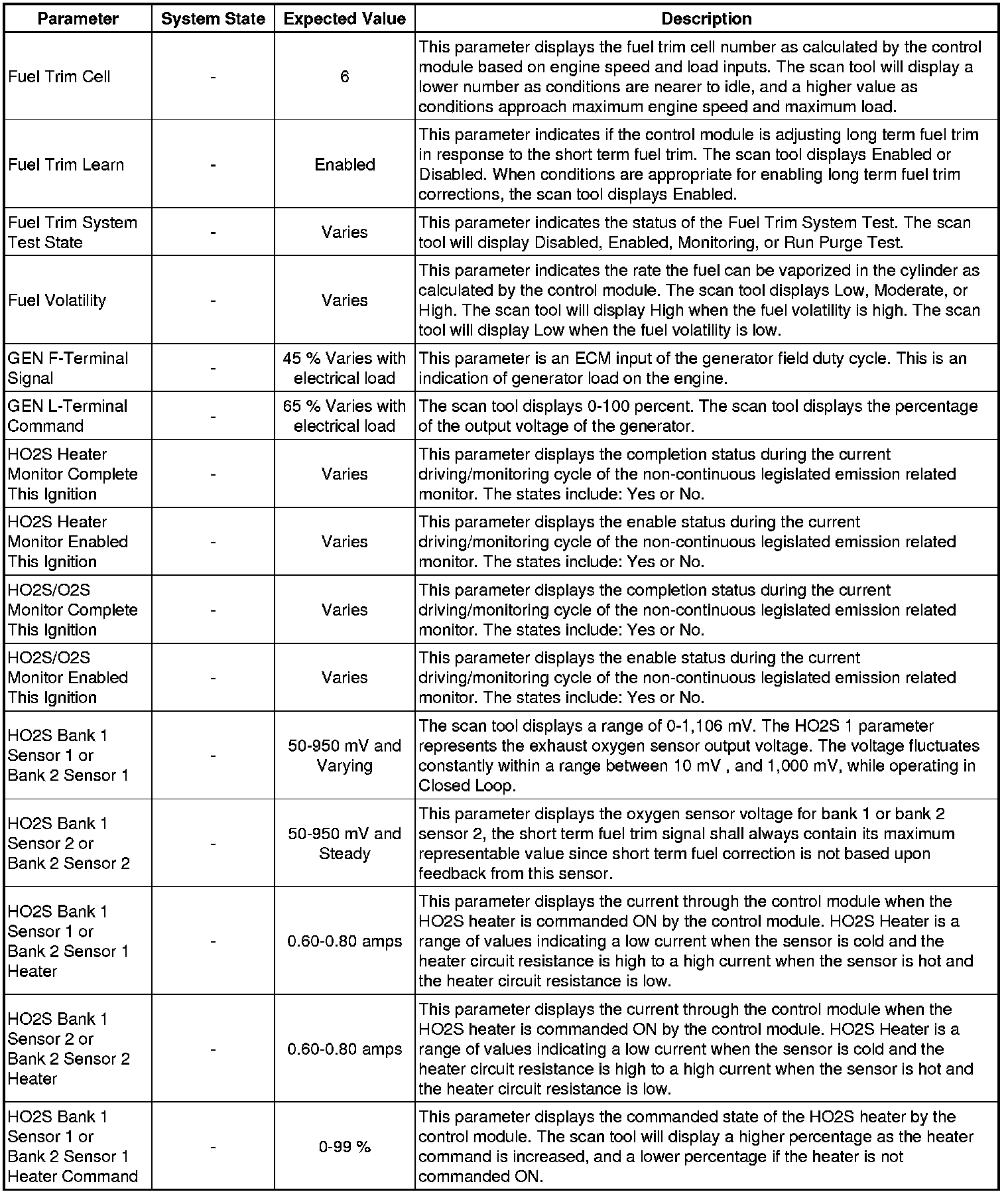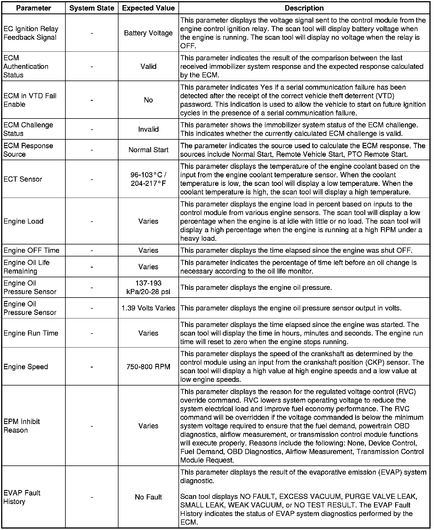 The Engine Scan Tool Data List represents values that would be seen on a normally running engine under the conditions listed below.