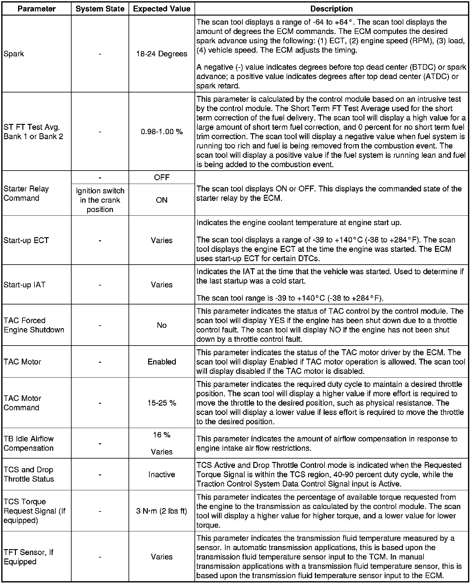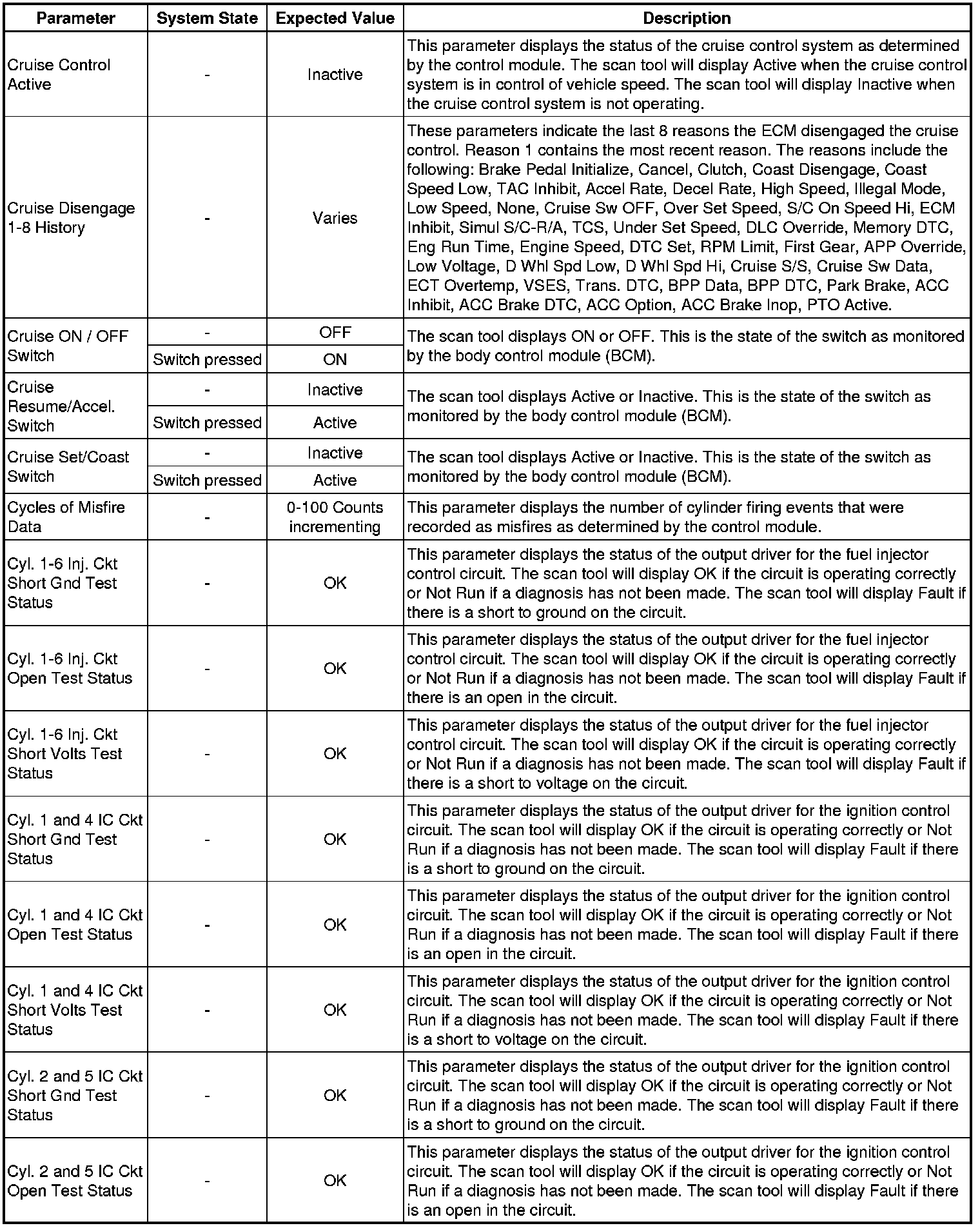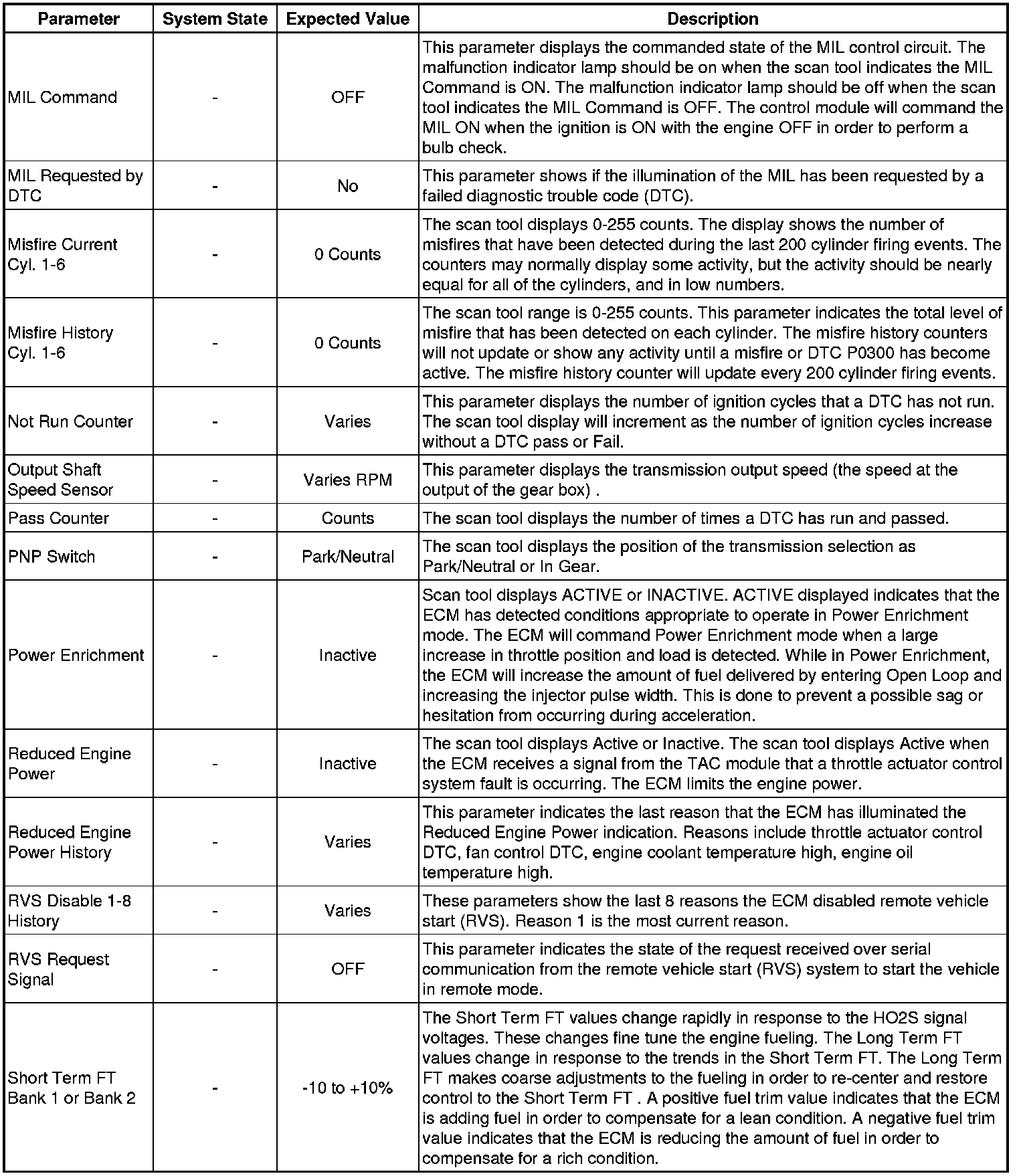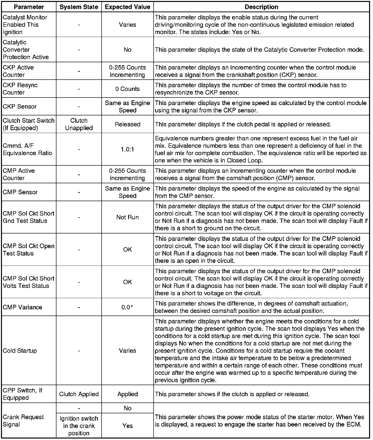 The Engine Control Module (ECM) Scan Tool Data List contains all ECM related parameters that are available on the scan tool. The list is arranged in alphabetical order. A given parameter may appear in any one of the data lists, and in some cases may appear more than once, or in more than one data list, in order to group certain related parameters together.