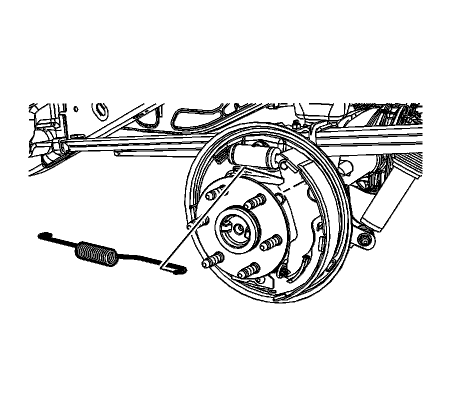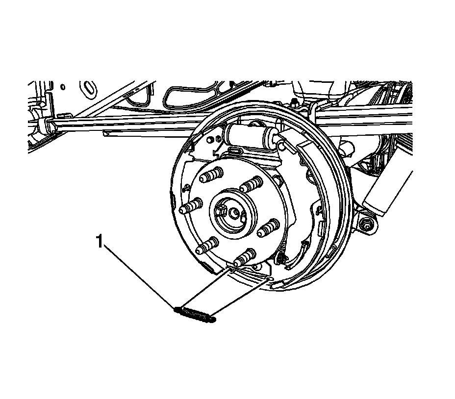 6. Inspect and replace any missing, worn, or damaged drum brake hardware. Refer to Drum Brake Hardware Inspection (Drum Brake Hardware Inspection).