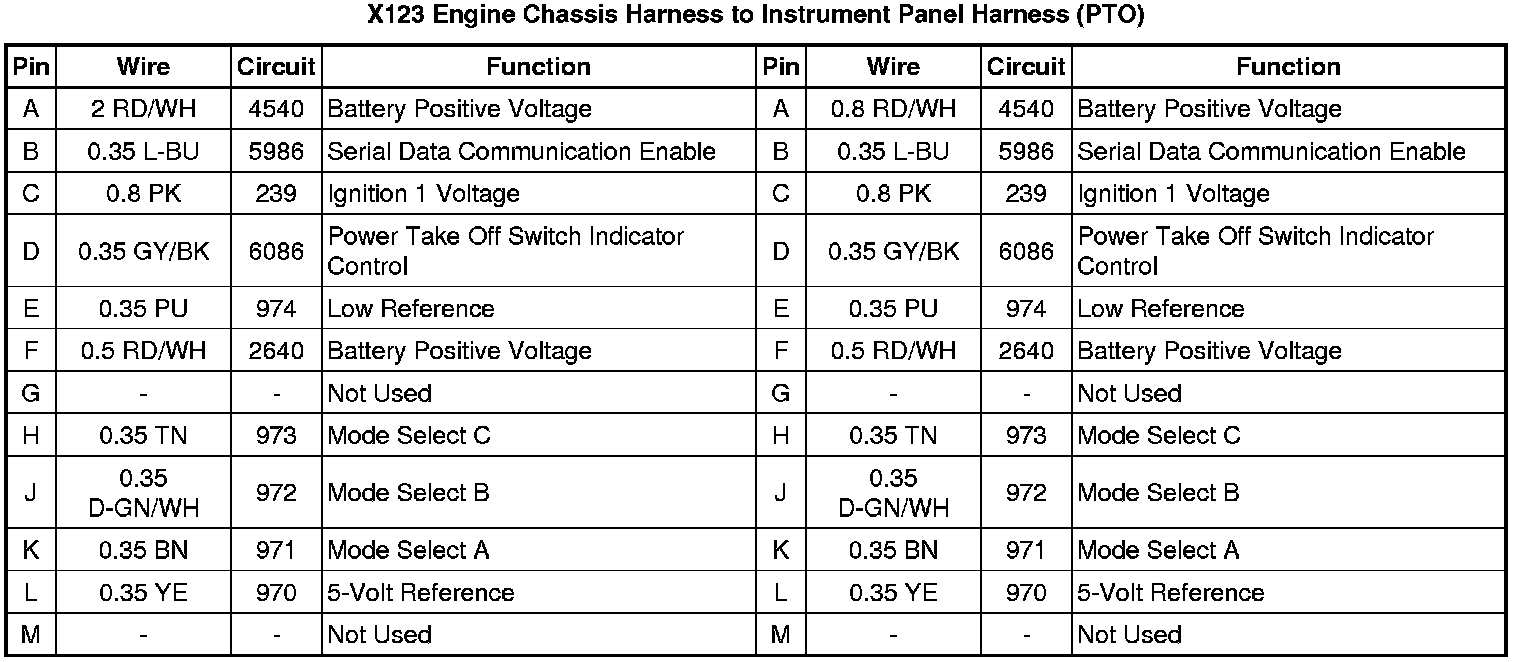 X123 Engine Chassis Harness to Instrument Panel Harness (PTO)