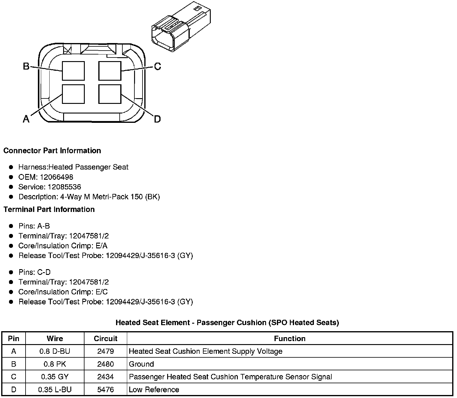 Heated Seat Element - Passenger Cushion (SPO Heated Seats)