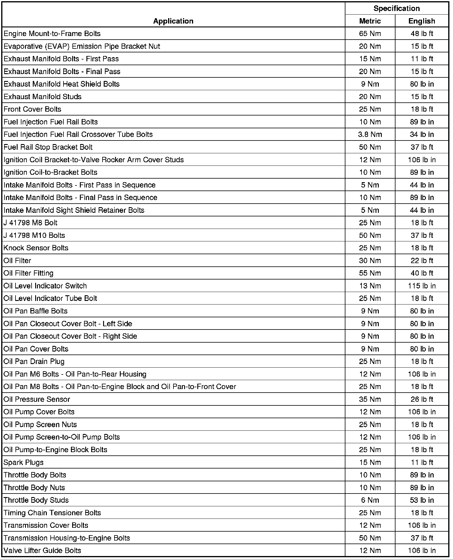 Fastener Tightening Specifications