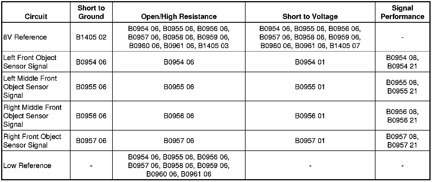 - Parking Aid Front Sensor Left Middle Circuit Performance - Signal Invalid