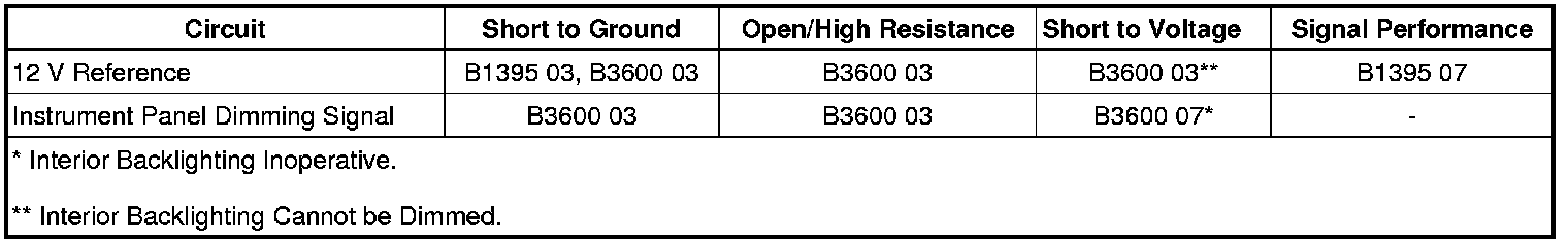 * The BCM detects a short to ground or open in the instrument panel dimming signal circuit.