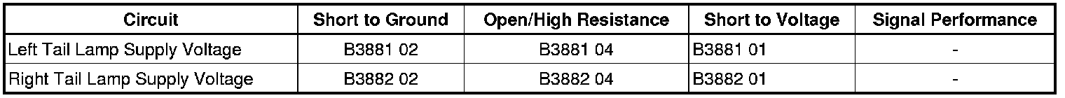 - Right Tail Lamp Circuit Short to Battery