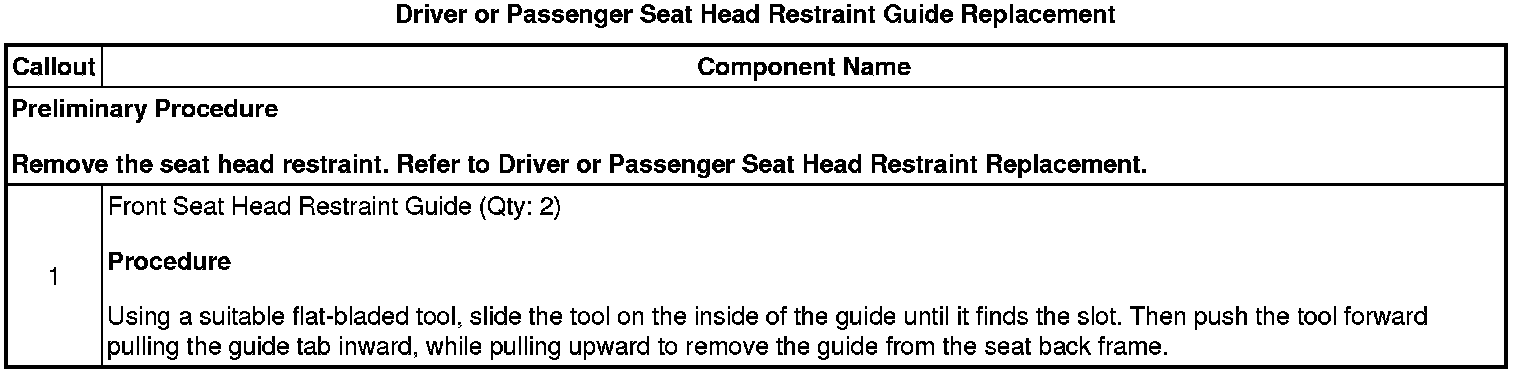 Driver or Passenger Seat Head Restraint Guide Replacement